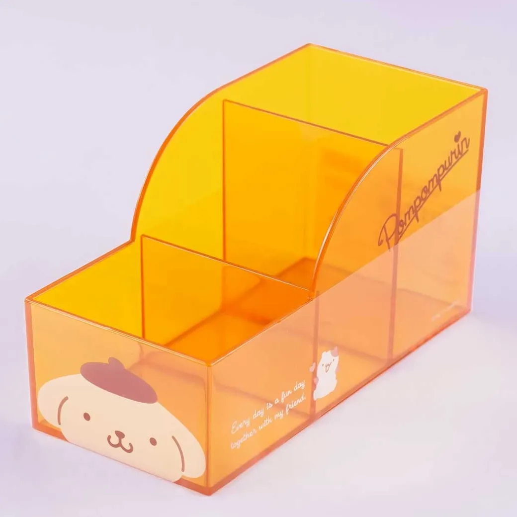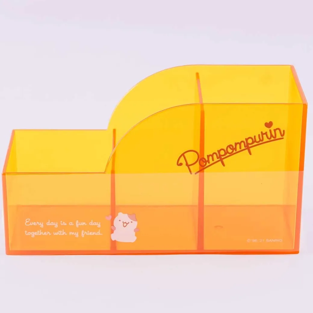 - A cute yellow transparent pen holder featuring prints of Pompompurin