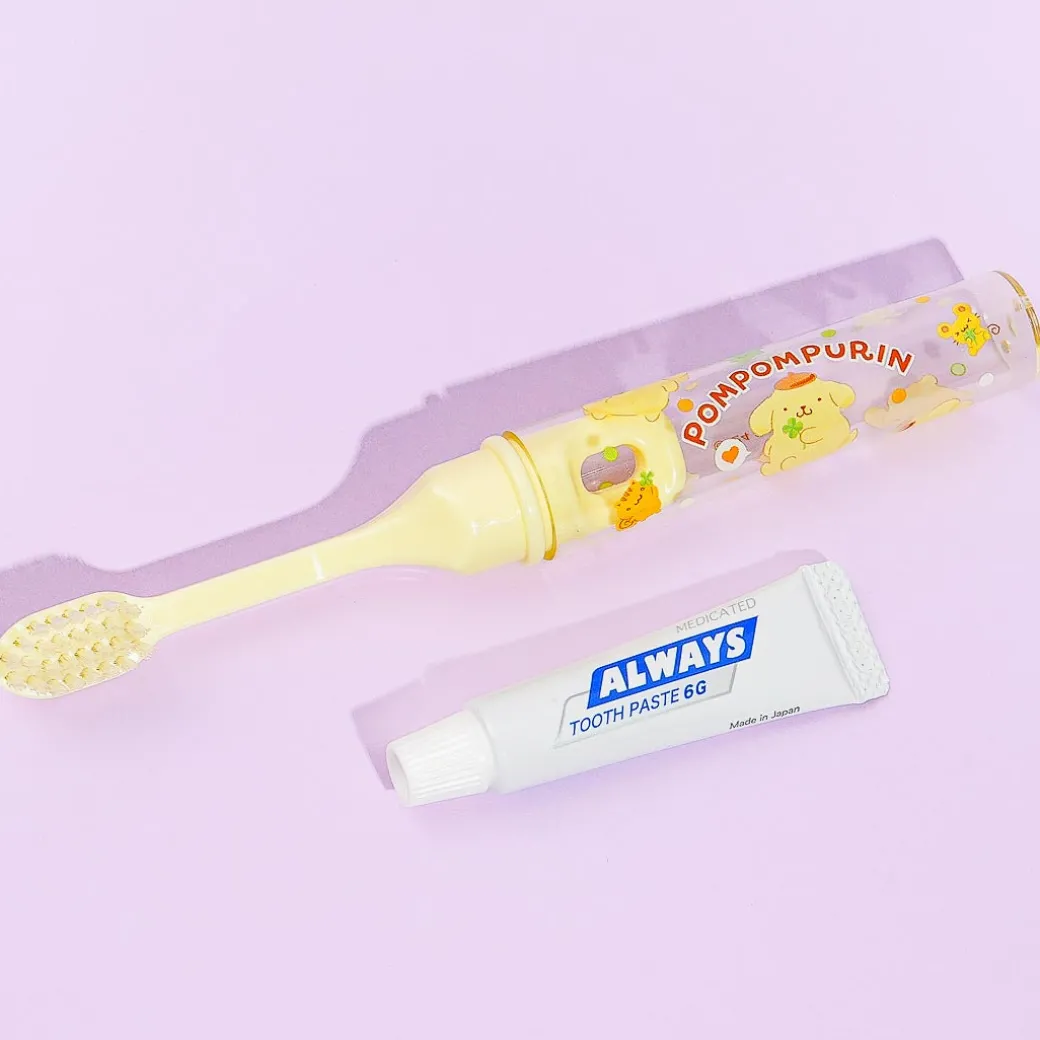 This kawaii toothbrush set features a Pompompurin with lucky four-leaf clovers! Use this to keep your breath fresh every day. This set even comes with a Pompompurin-shaped lid for added cuteness!