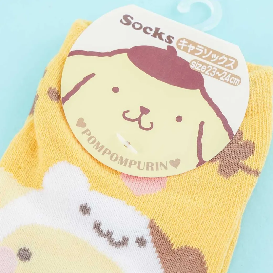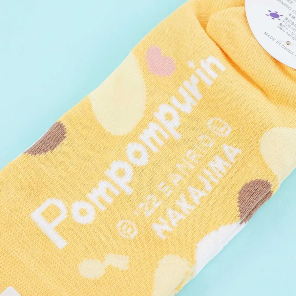 - A soft pair of socks featuring Pompompurin wearing a kawaii Japanese onesie costume