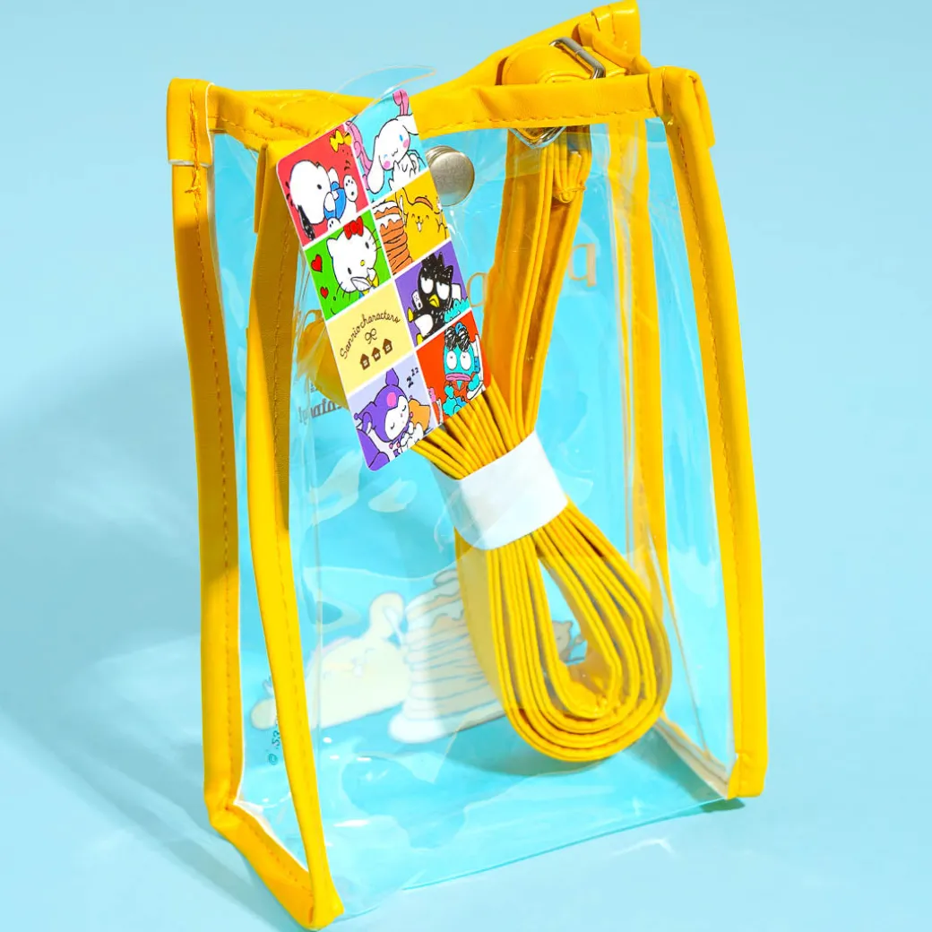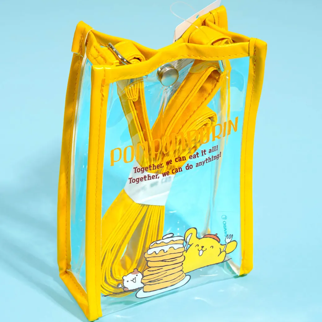 Bring along this cute transparent shoulder pouch while you go cafe-hopping with your buddies. It showcases a print of Pompompurin getting ready to eat a big stack of pancakes for breakfast! This clear pouch has an adjustable shoulder strap and a button closure.