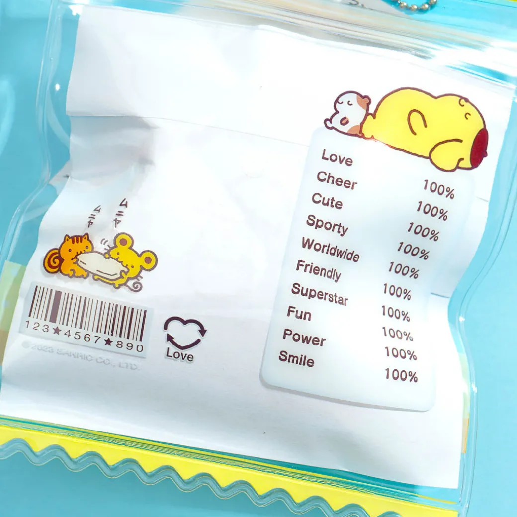 This kawaii transparent bag charm features prints of Pompompurin hanging out with Muffin. It has a mini Pompompurin plushie charm inside it! You can take it out to display on your desk or to play with. Attach this charm to your favorite bag with its detachable ball chain.