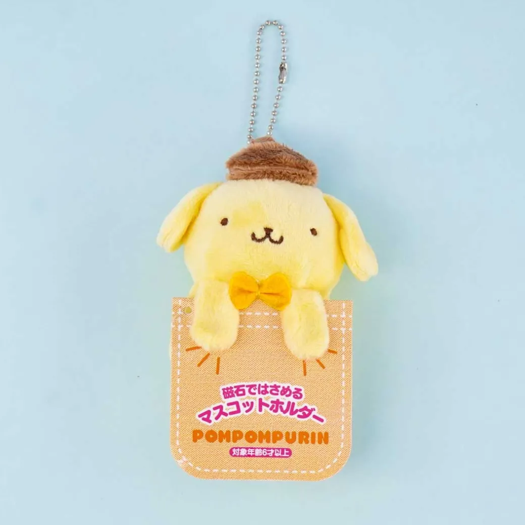 - A kawaii Pompompurin plushie charm with magnets on its hands and body