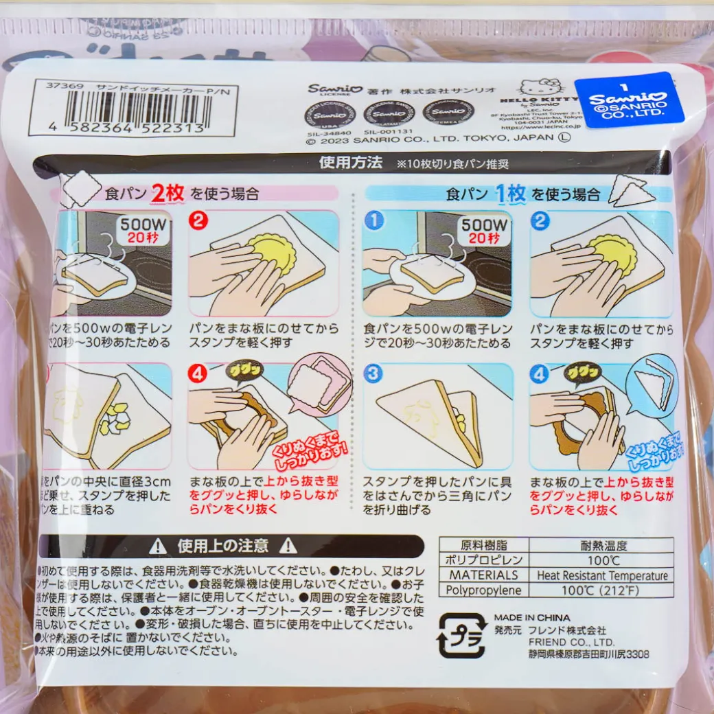 Create super cute sandwiches with this sandwich maker! It features a cute stamp that leaves a Cinnamoroll outline on your bread. Simply heat your bread, press the stamp, add a filling, and use the mold to cut and seal your sandwich!