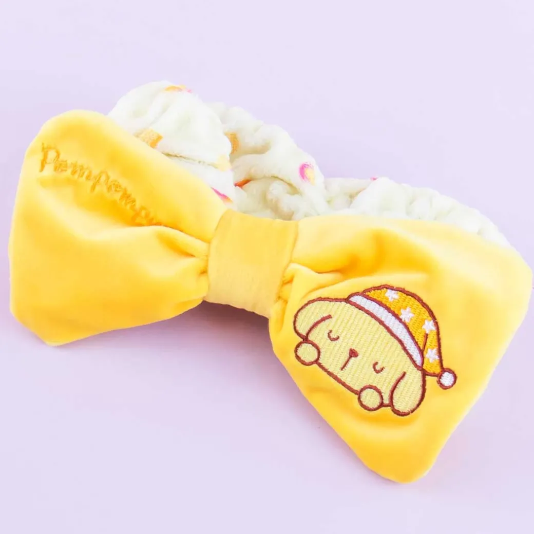 - A kawaii cloth headband with a ribbon featuring Pompomurin sleeping with a nightcap