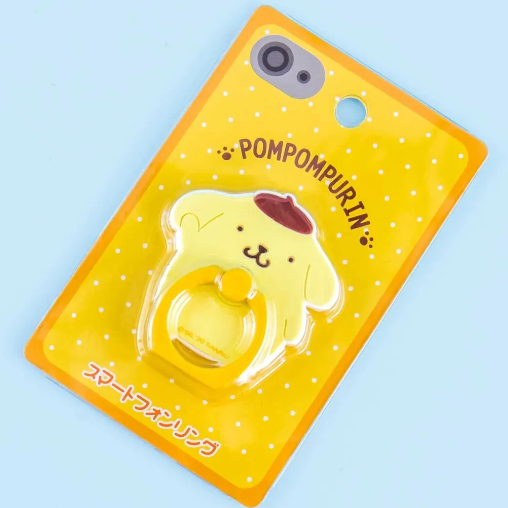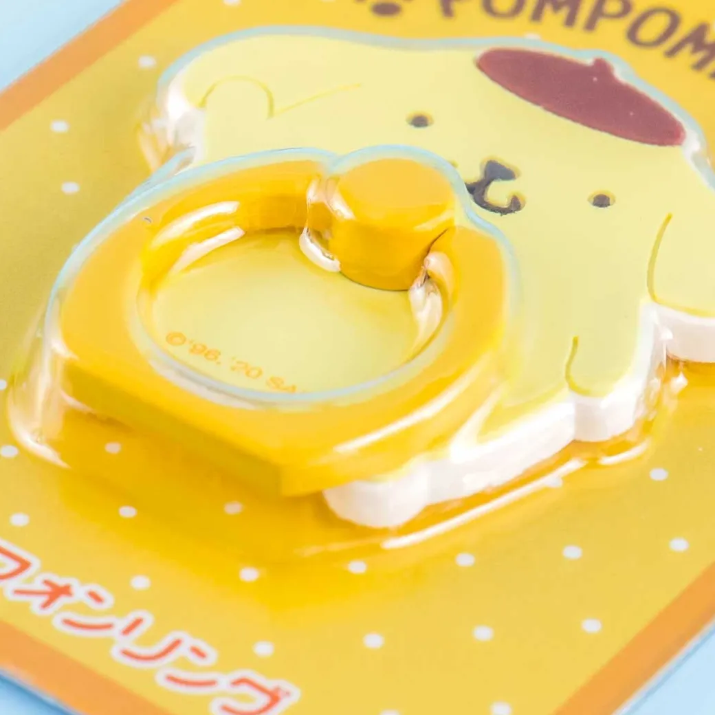 - A smartphone ring holder with a base shaped like Pompompurin