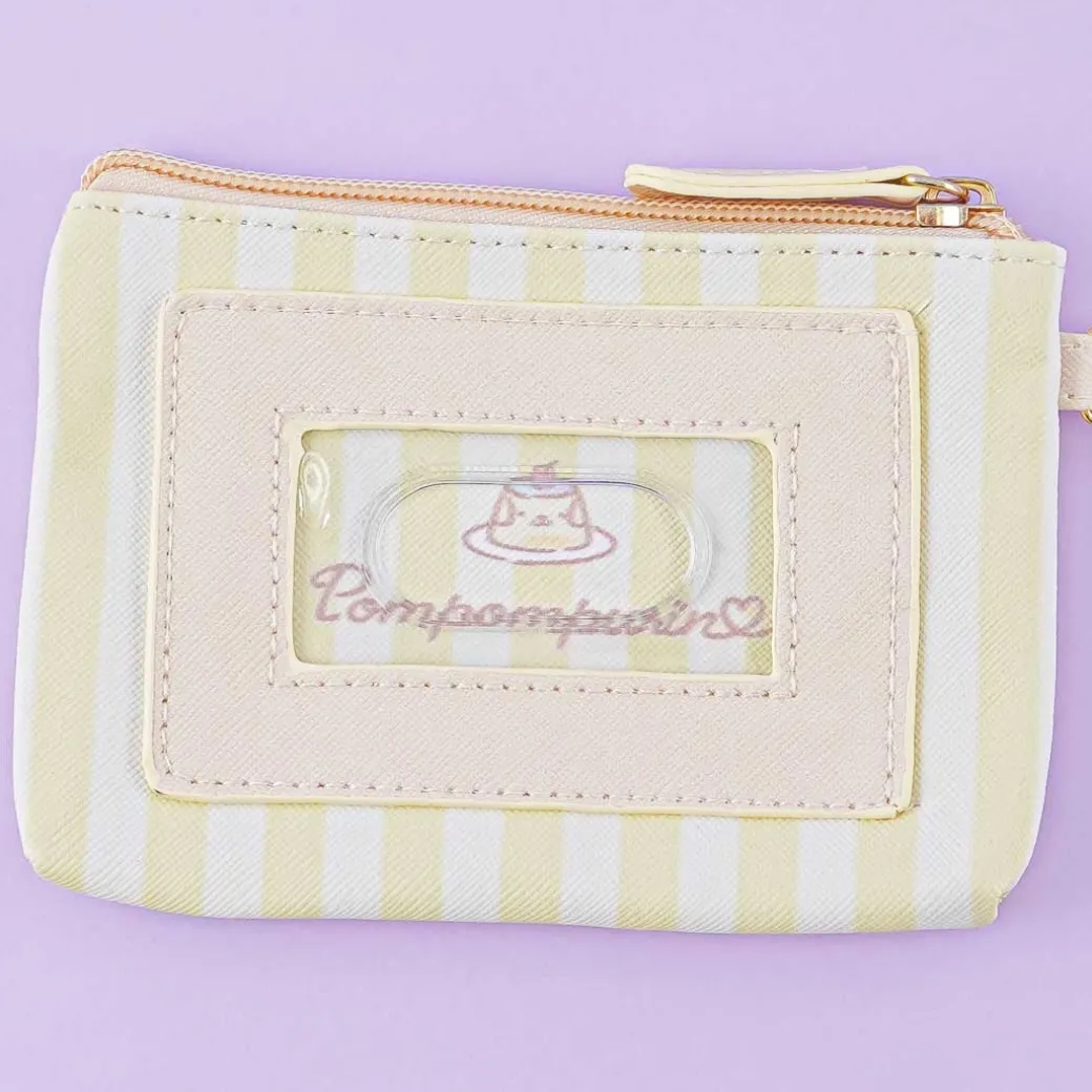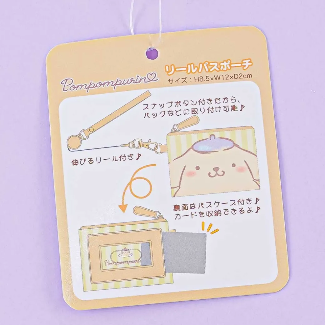 - Features an extendable reel, an outer bus pass compartment, a zipper closure, and a detachable strap