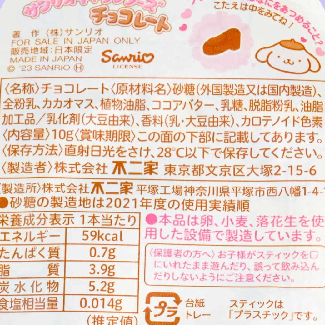 Have a bite of this sweet treat from Sanrio and Fujiya! With three layers of chocolate in the shape of Pompompurin’s head, this lollipop is delicious to eat and fun to look at.