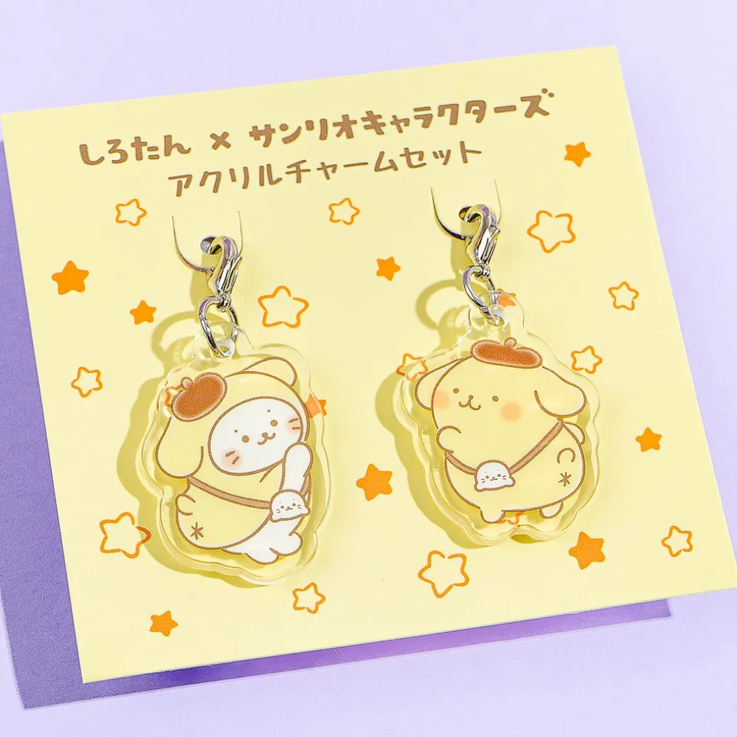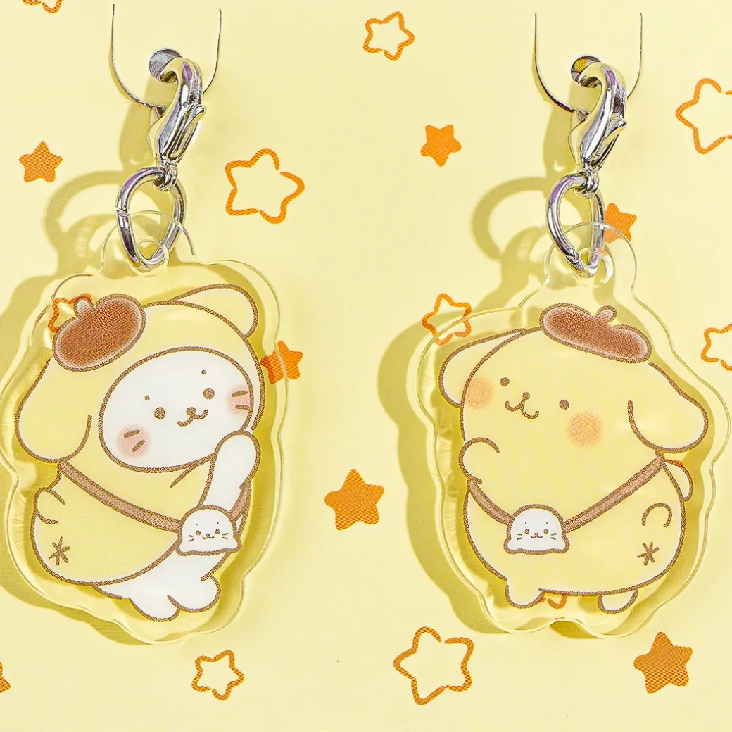 This kawaii set has die-cut designs featuring Pompompurin and Sirotan the cute white seal! Share these acrylic charms with your bestie so you can be matchy-matchy! The cute accessories also come with metal clips.