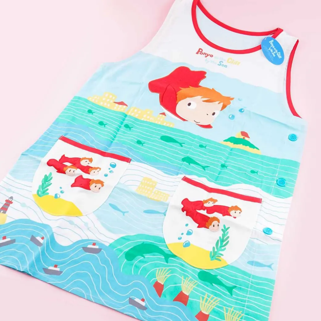 - A super cute apron illustrated with Ponyo swimming in the sea