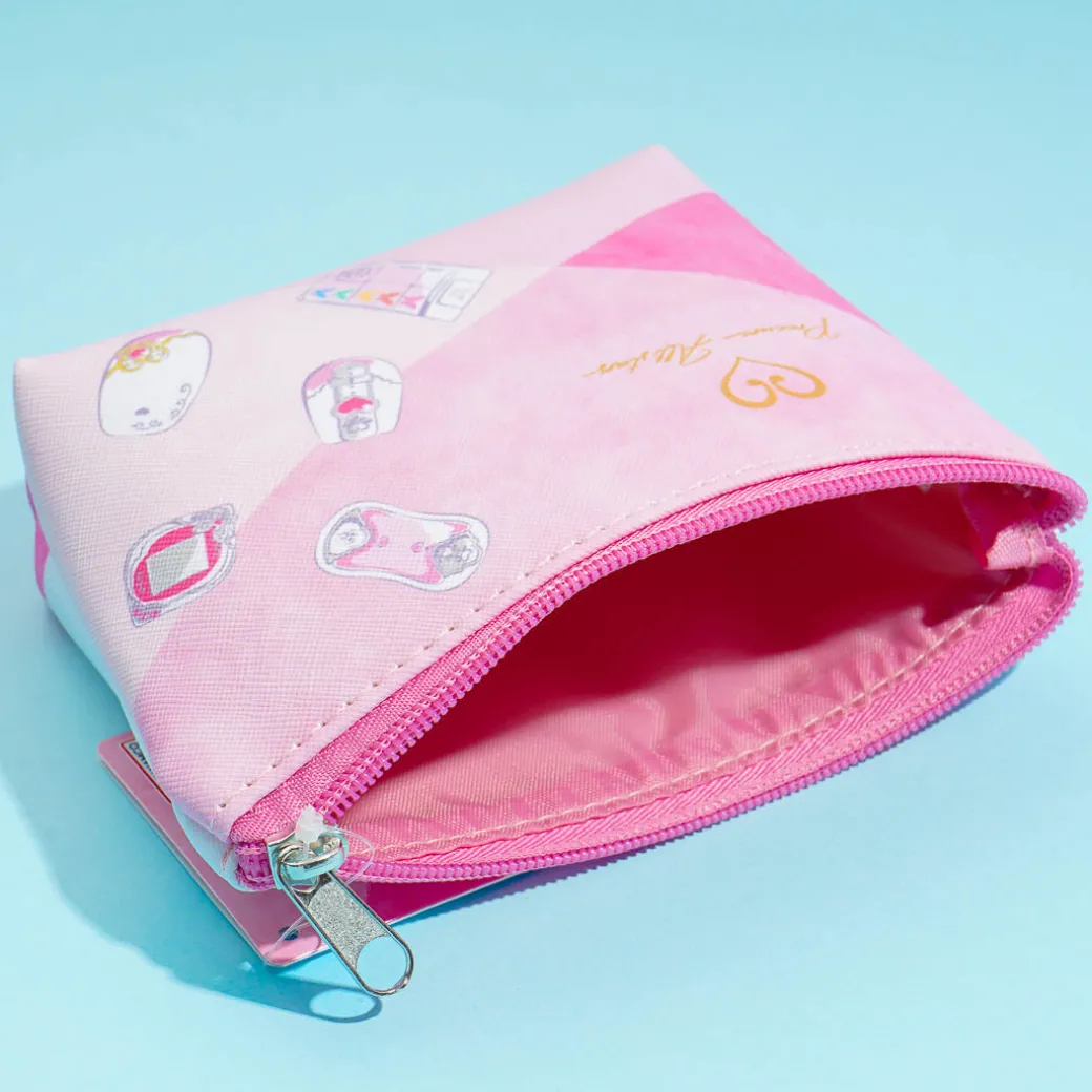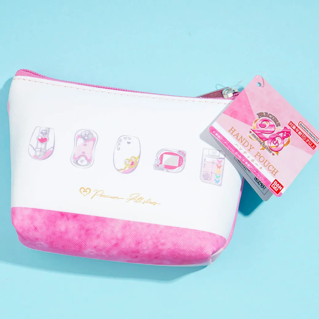 This kawaii mini pouch features prints of Pretty Cure items. Store your Pretty Cure charms inside this super cute mini pouch. It has a zipper closure to keep your things nice and safe!