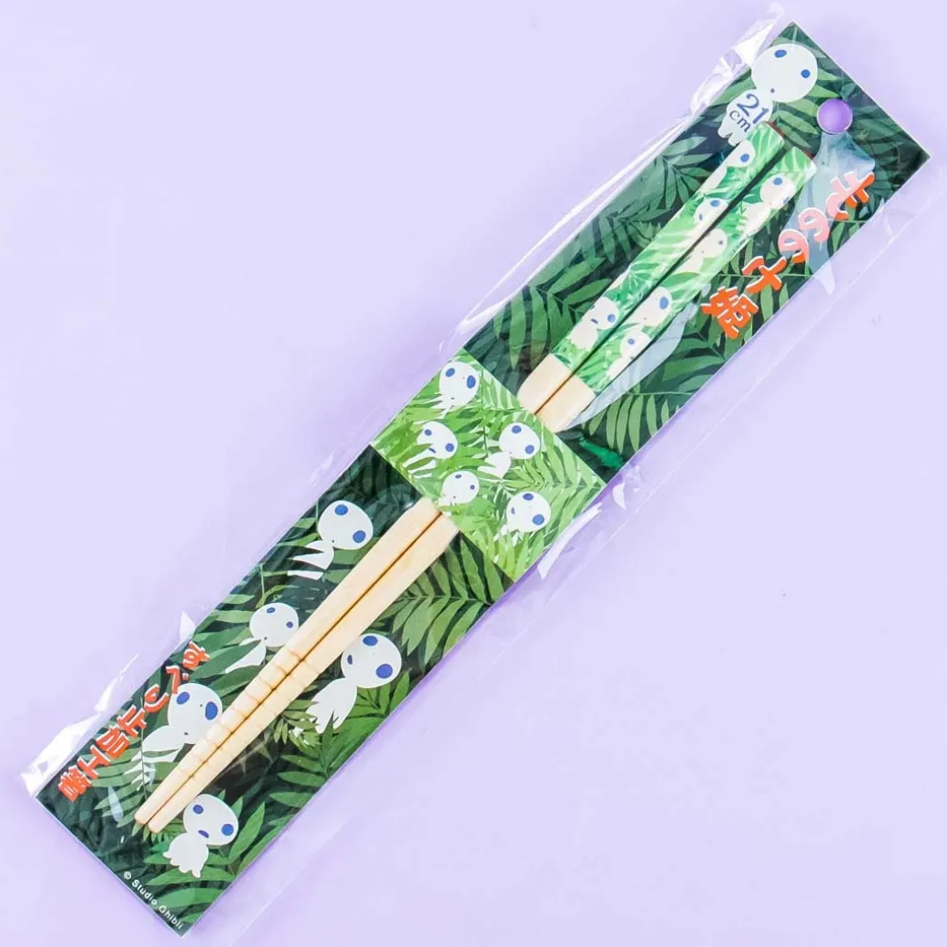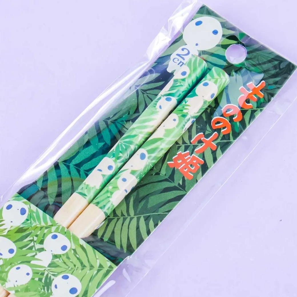 - A pair of bamboo chopsticks illustrated with prints of the Kodama from Princess Mononoke