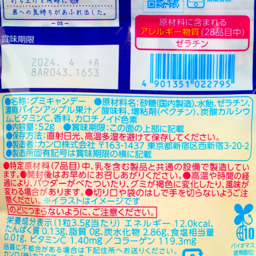 Chew on this refreshing treat! It’s a heart-shaped gummy candy that’s packed with juicy pineapple soda flavor and vitamin C. Its resealable packaging features different summer-themed scenes.