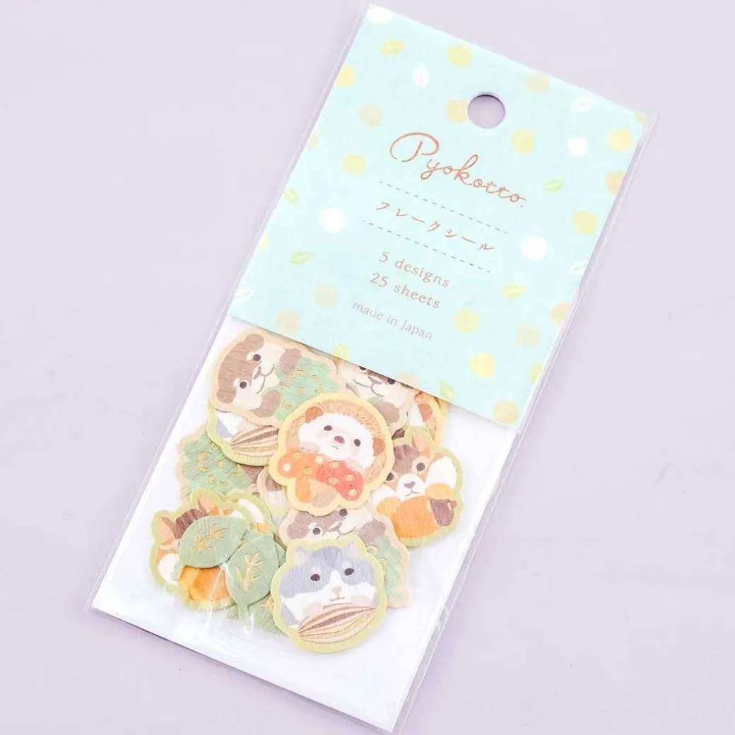 - A pack of super cute die-cut stickers featuring leaves, otters, hamsters, squirrels, and hedgehogs