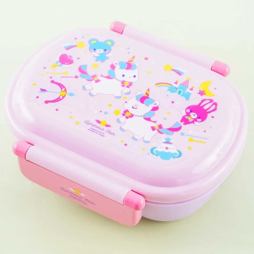 - A cute bento box illustrated with kawaii rainbow unicorns