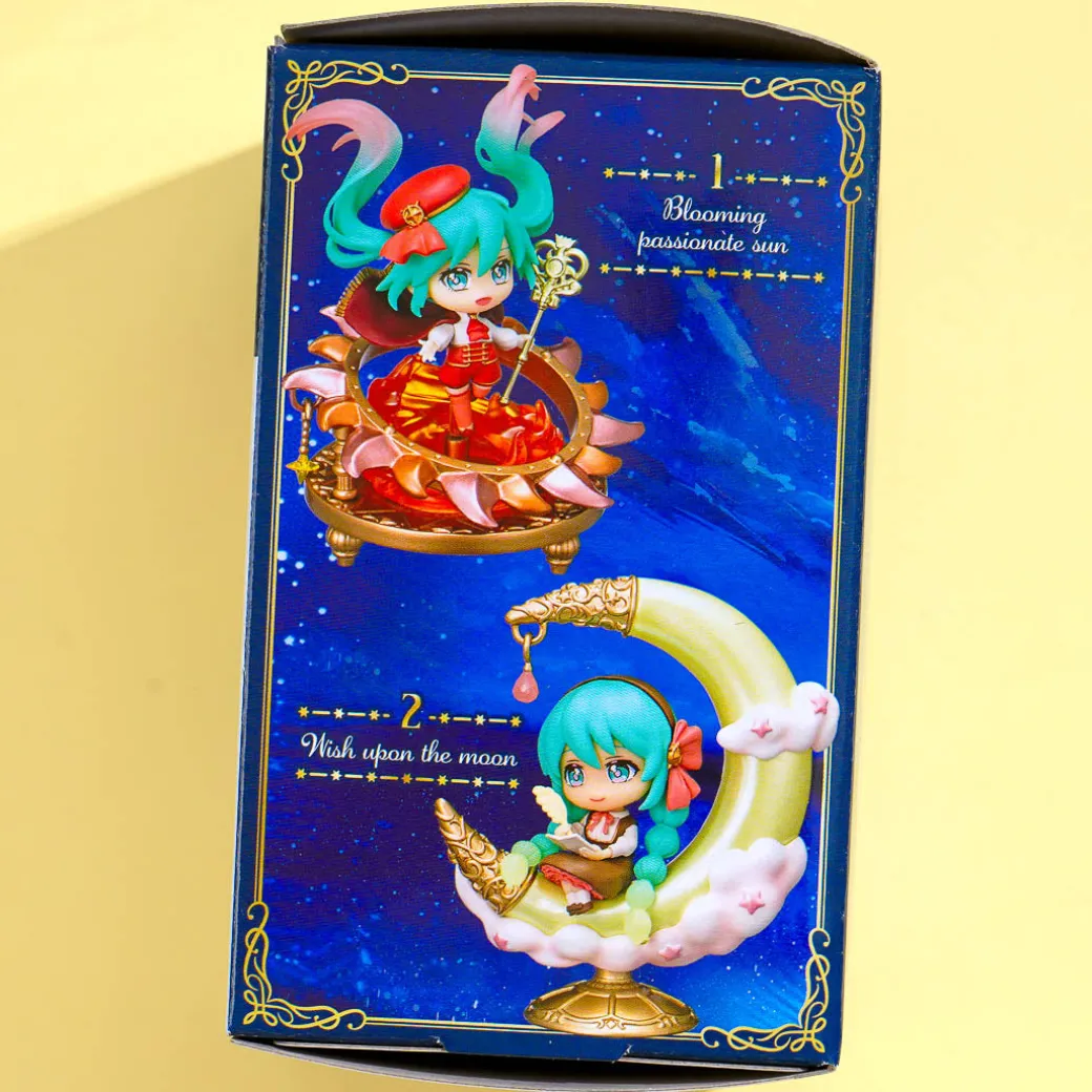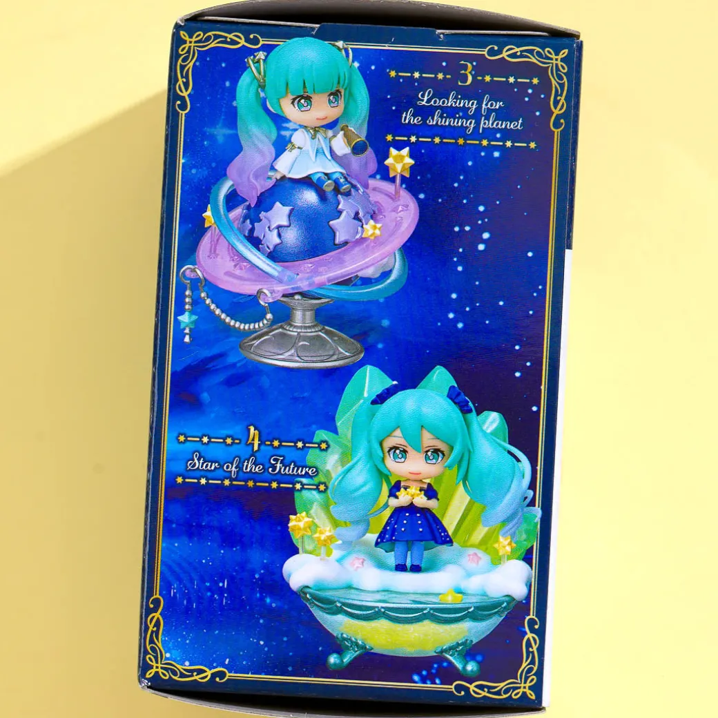 Add this super kawaii Hatsune Miku figure to your collection! It comes from the “A Tale of the Sparkling Night Sky: Hatsune Miku Starrium” collection, which features Hatsune Miku on a cute cosmic stand. There are four designs to collect and trade!