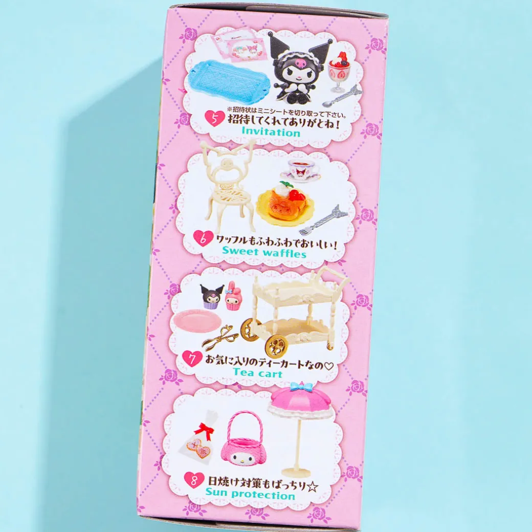 Join My Melody and Kuromi for afternoon tea with this kawaii miniature set! It comes from the My Melody and Kuromi “Sweet Tea Party” miniature series. It includes a tea party set, a special cake set, a cake stand set, a cute scones set, an invitation set, a sweet waffles set, a tea cart set, and a sun protection set. Collect all eight sets to complete the tea party series!