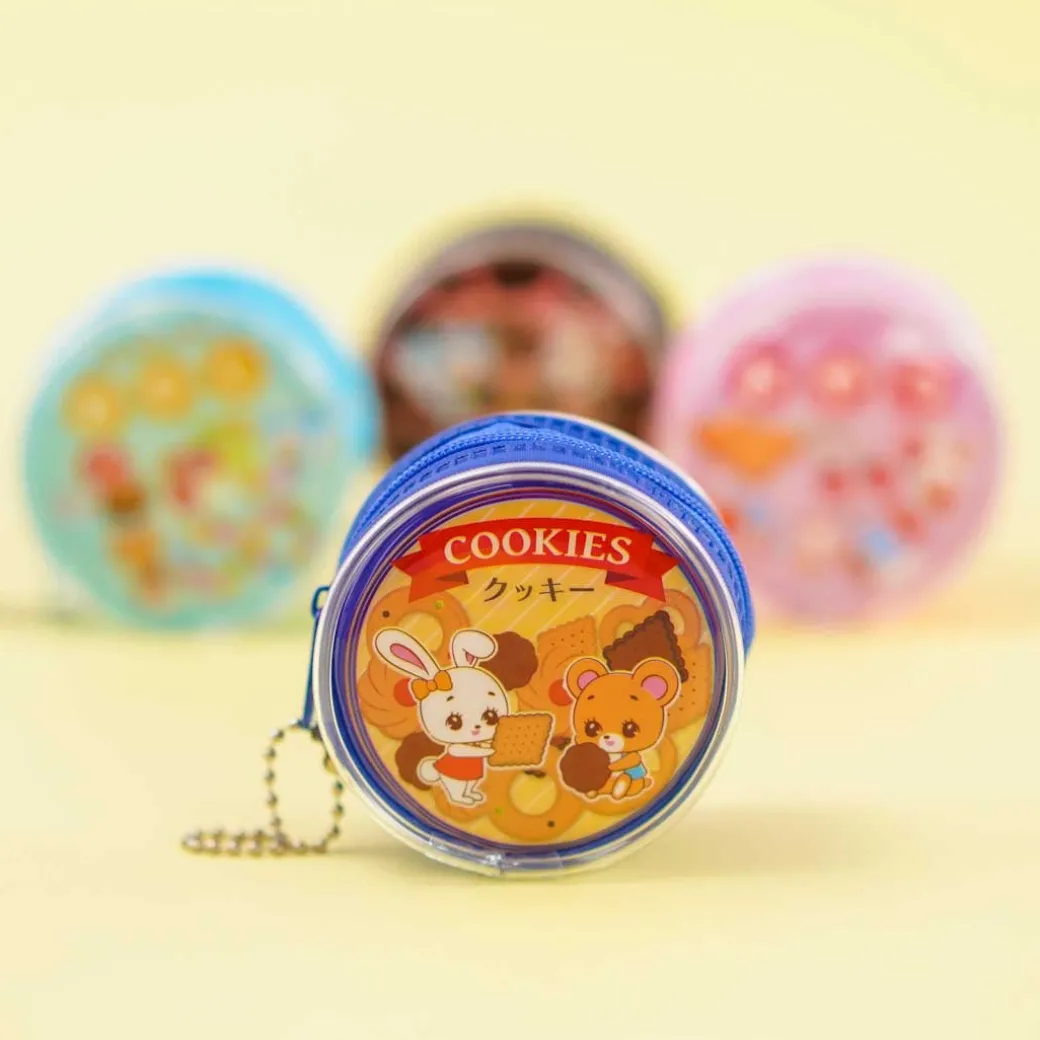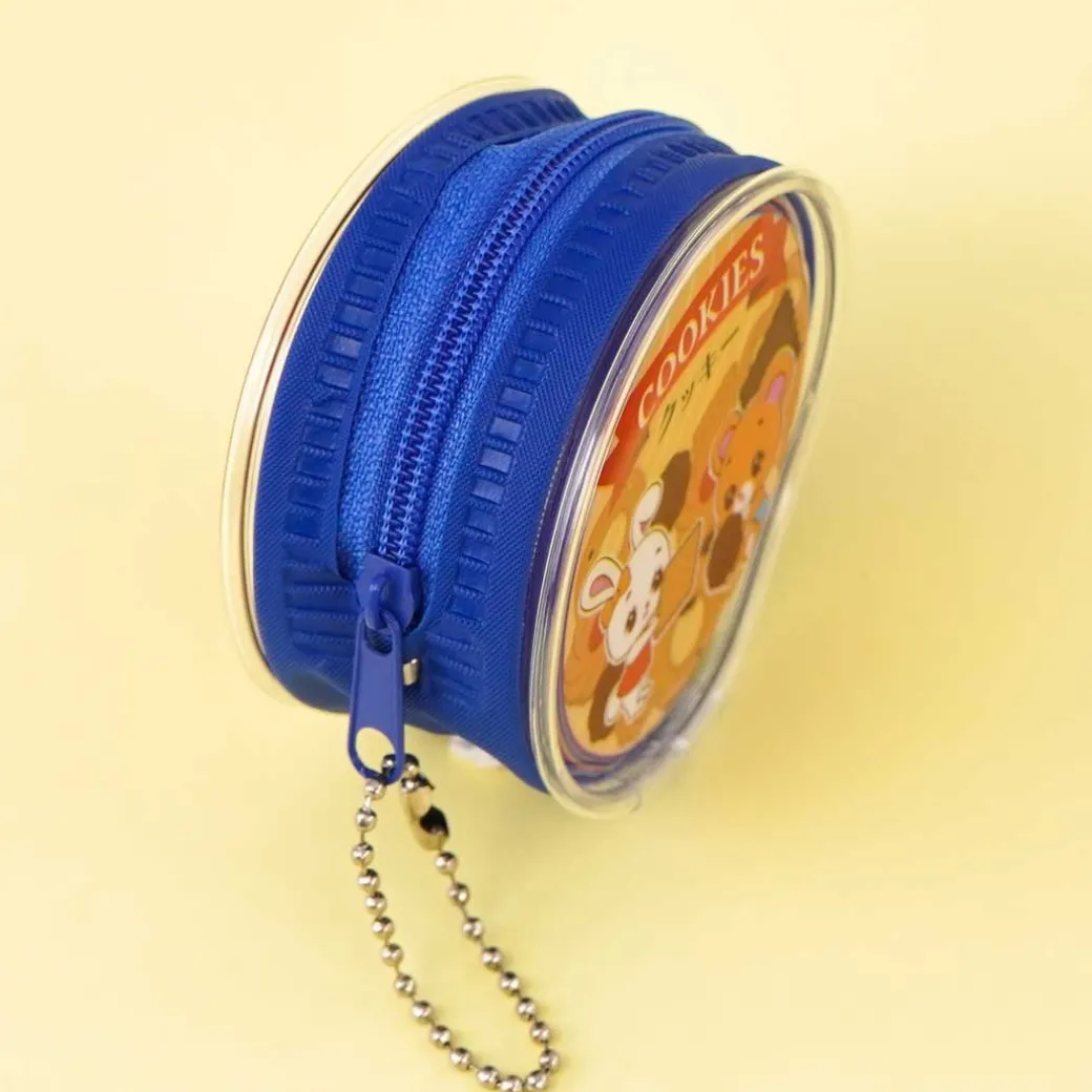 - A cute zippered round pouch decorated with retro prints of animals