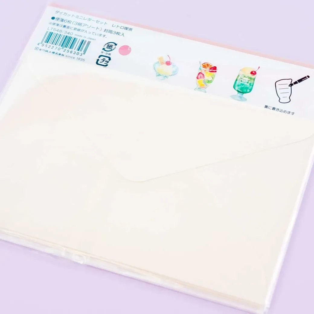 - A super kawaii letter set illustrated with retro prints of desserts from a cafe