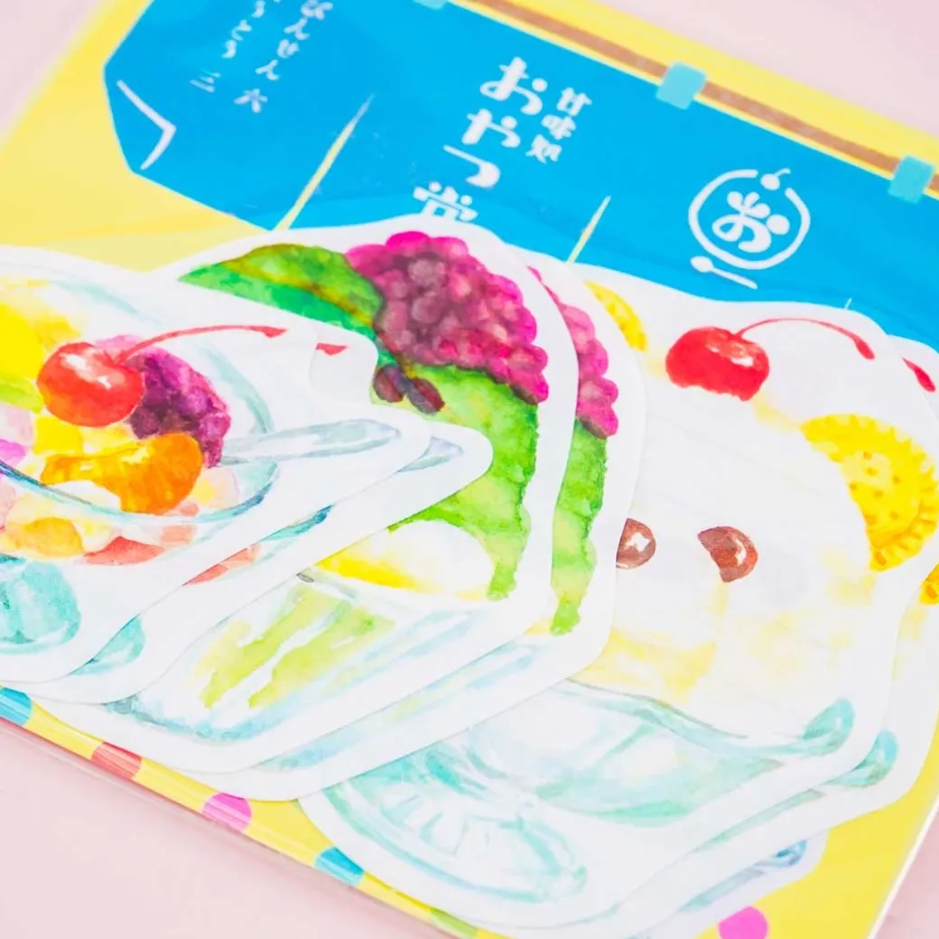 - A cute mini letter set illustrated with retro prints of sweets from a dessert shop