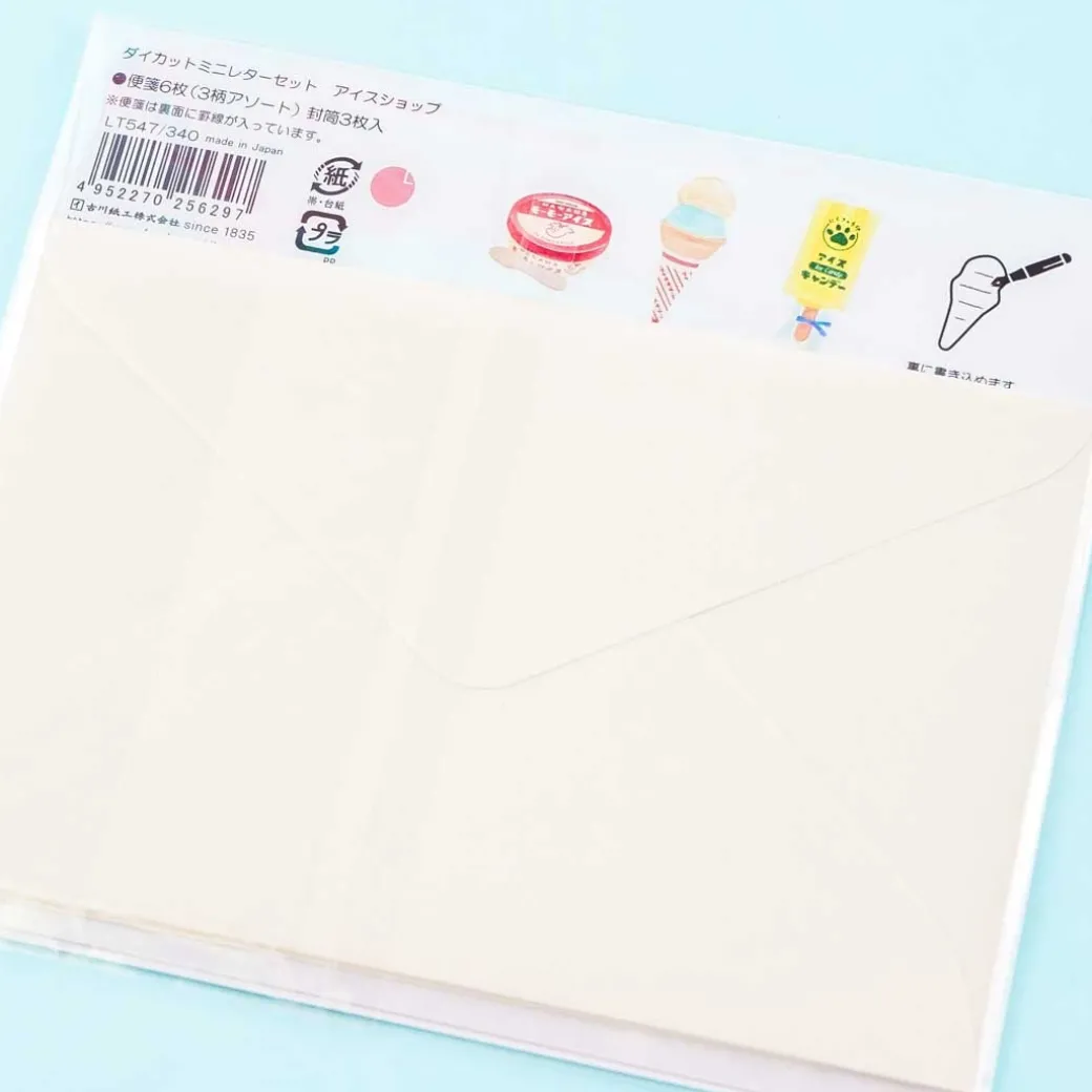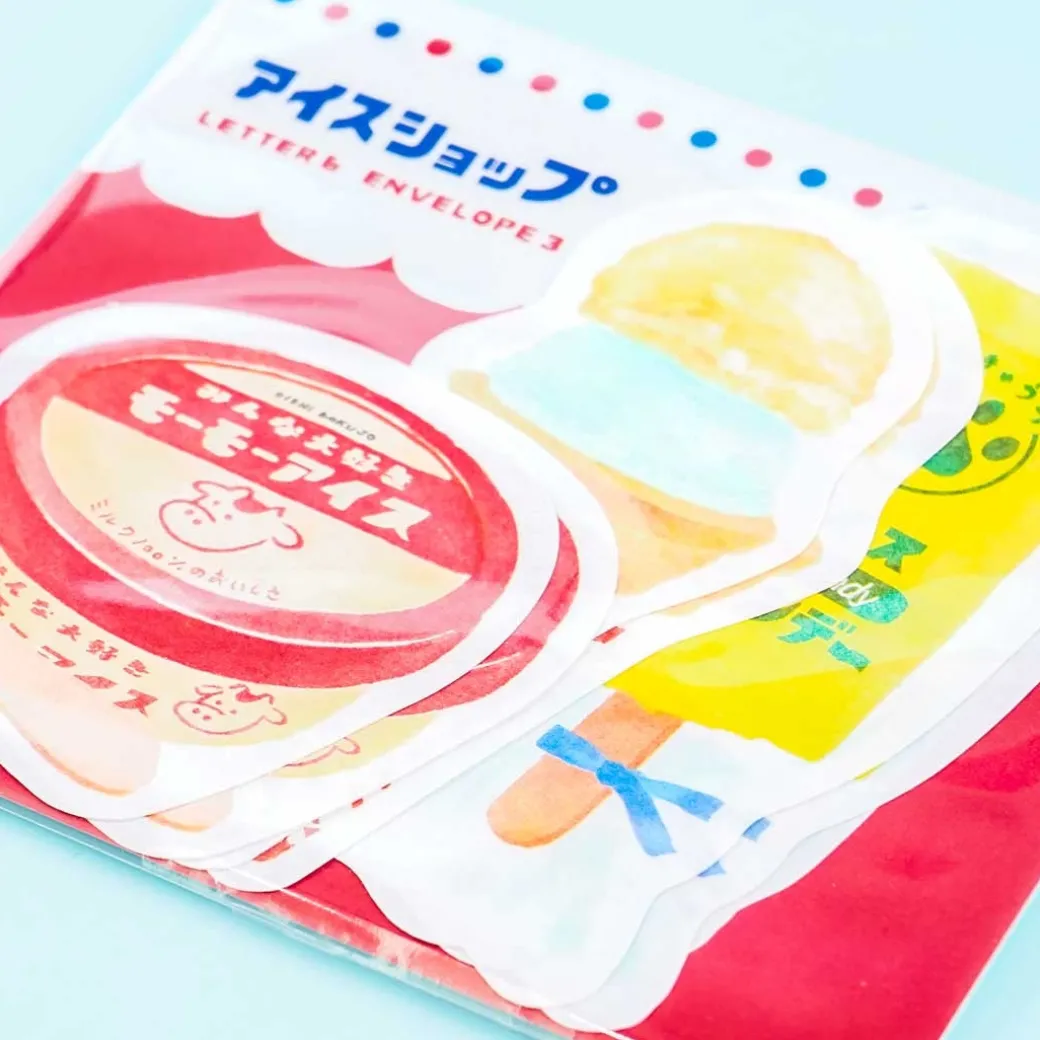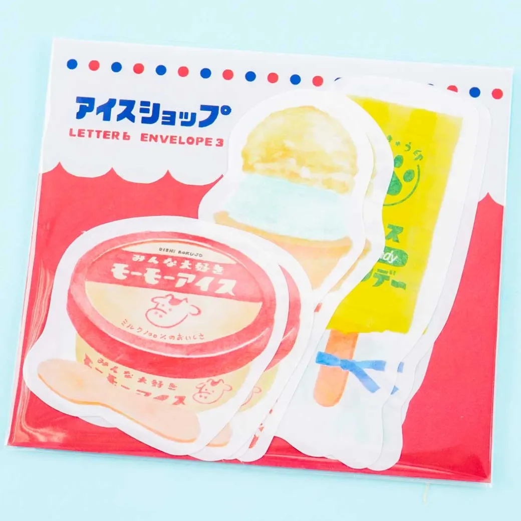 - A kawaii mini letter set showcasing retro prints of different kidns of ice cream