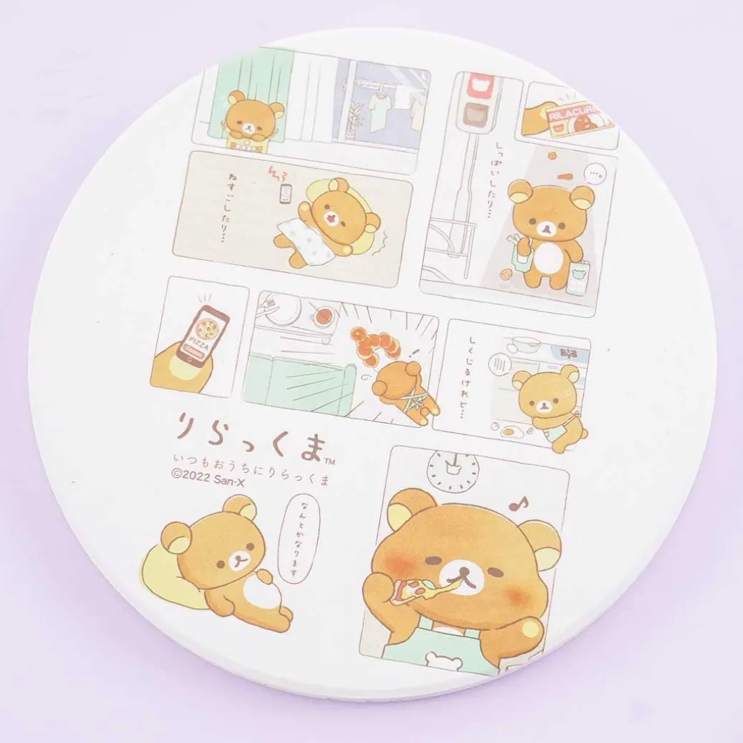 - A super kawaii water absorption coaster illustrated with Rilakkuma having a productive day