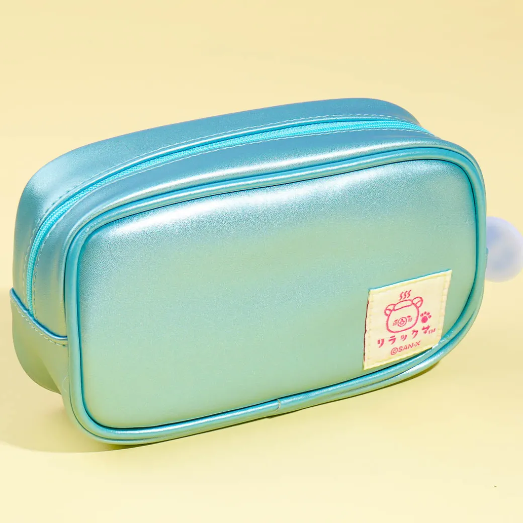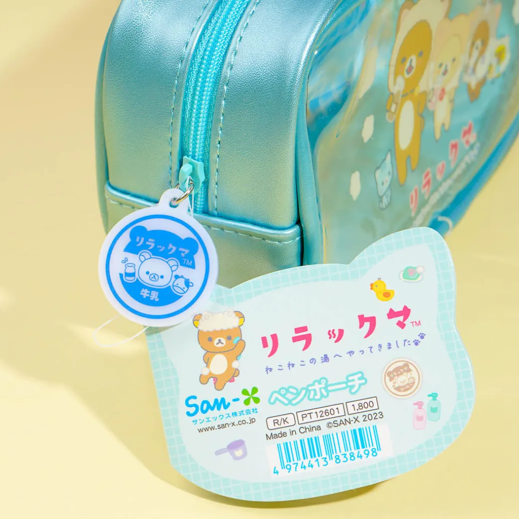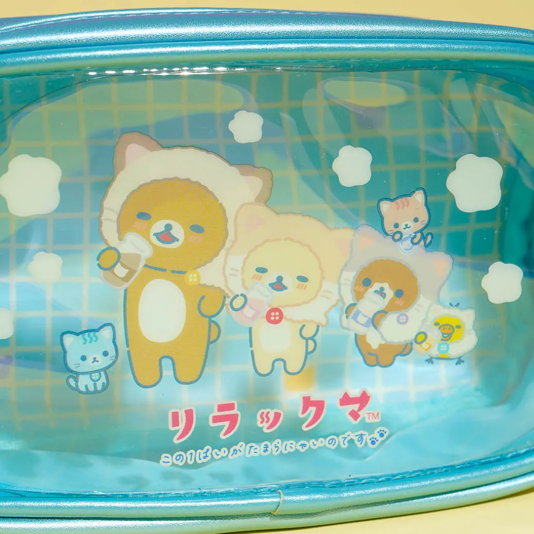 Stash away your cosmetics and other travel essentials in this kawaii pouch! It features a transparent front with cute prints of Rilakkuma and friends in a cat-themed public bathhouse. This zippered pouch even has a metallic finish and a cute Rilakkuma logo zipper!