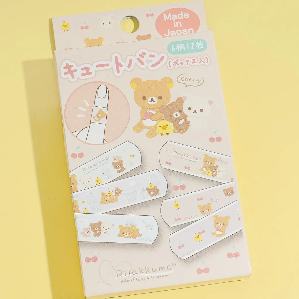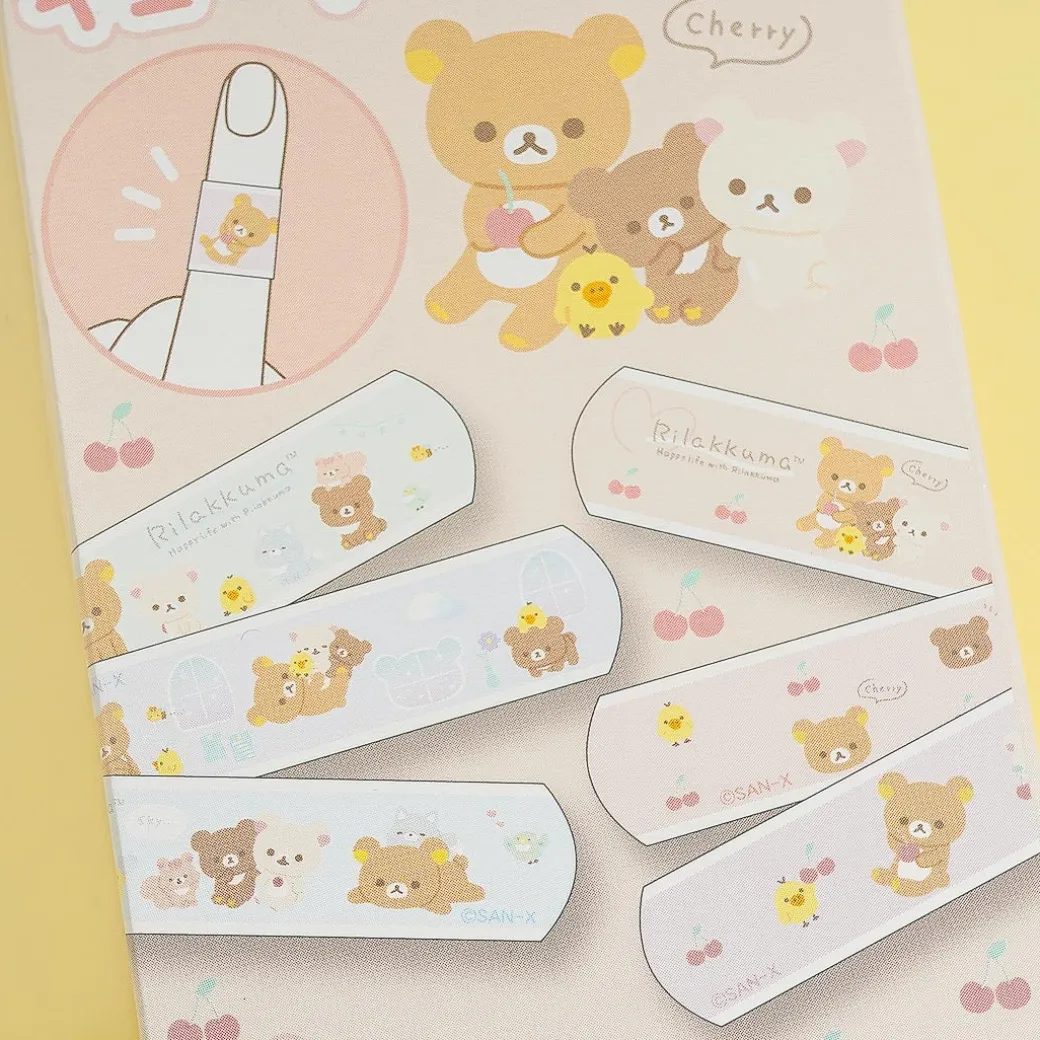 Protect your wounds in a cute way using these bandages! They feature kawaii illustrations of Rilakkuma and cherries.