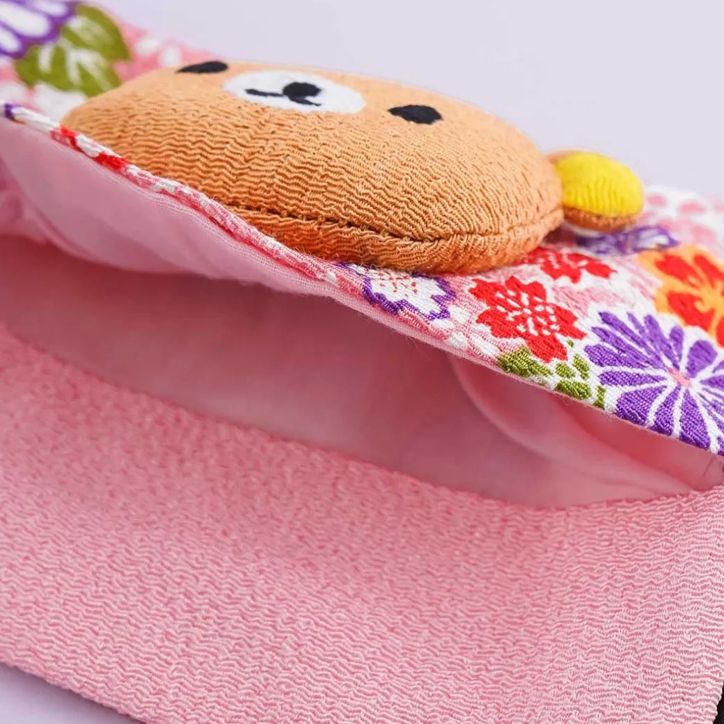 - An envelope-style tissue pouch featuring a Rilakkuma head plushie and a patterned flap