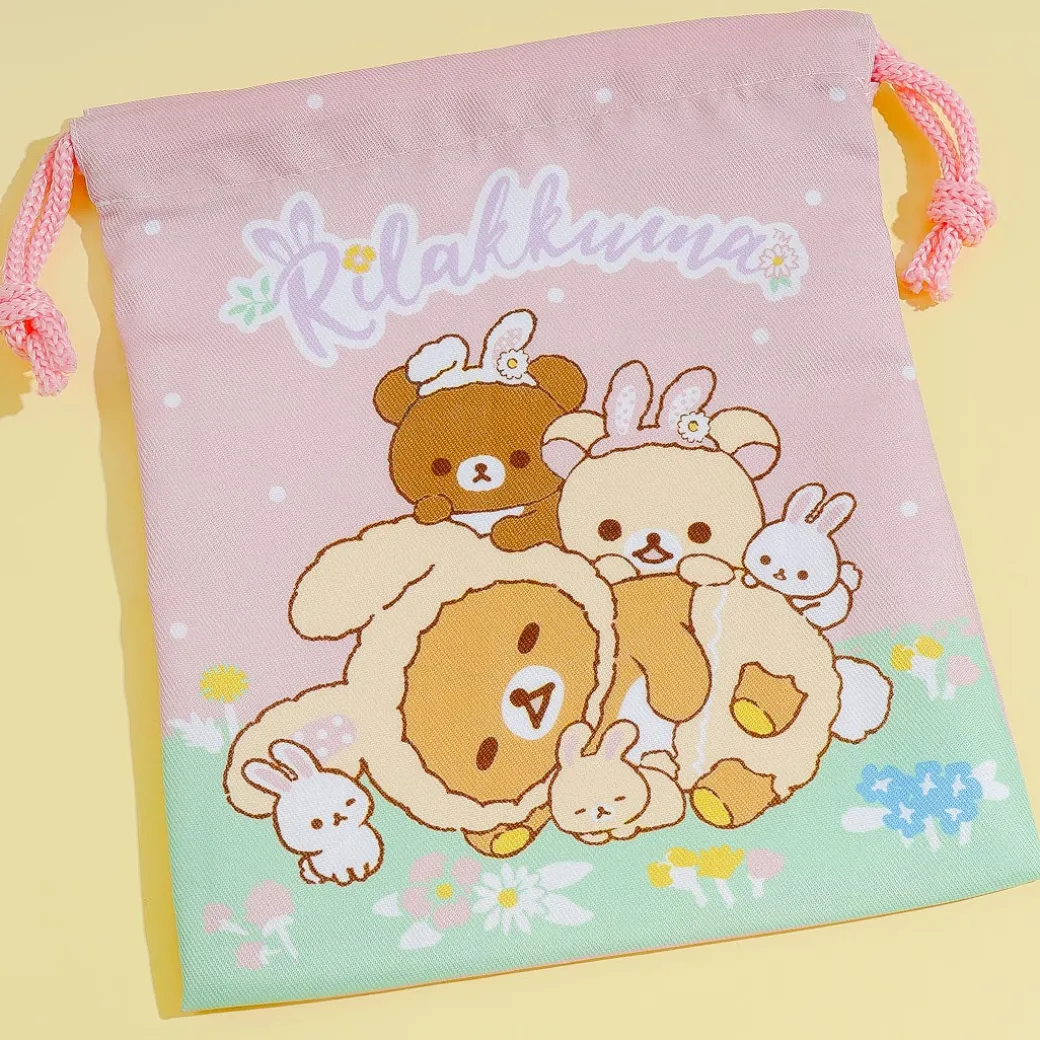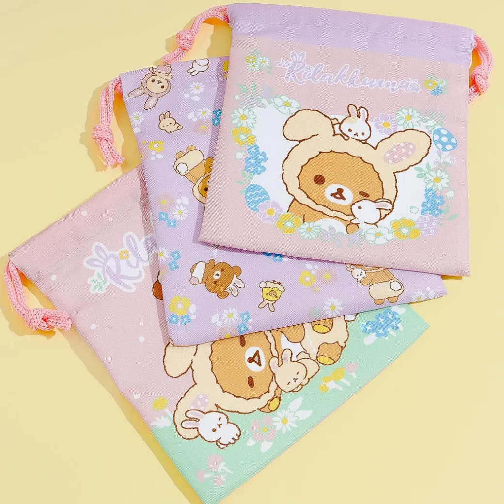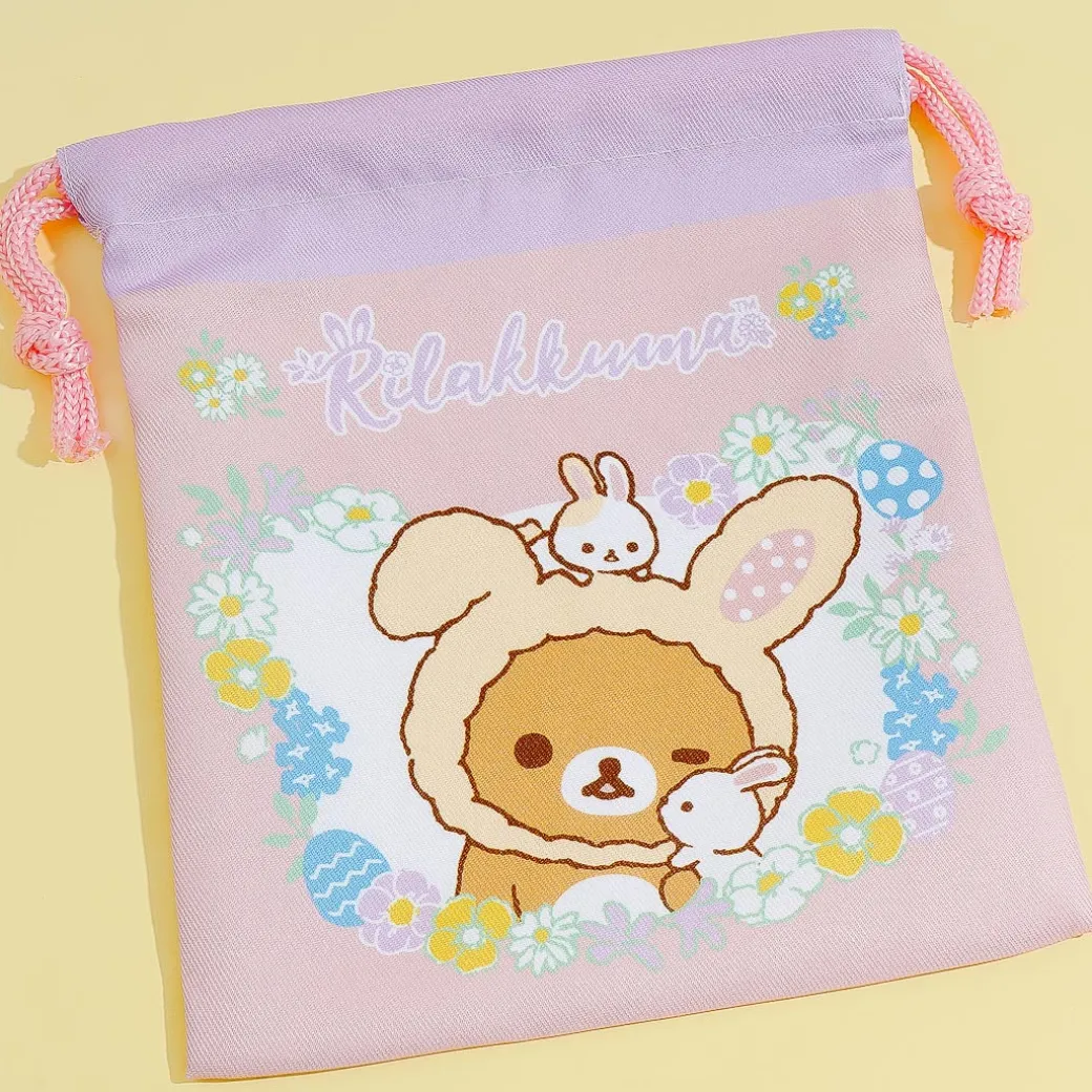 You can store your keys, cards, and other small travel essentials in this kawaii set of drawstring bags! It showcases cute illustrations of Rilakkuma dressed as an Easter bunny. Simply pull the strings to close the pouch!