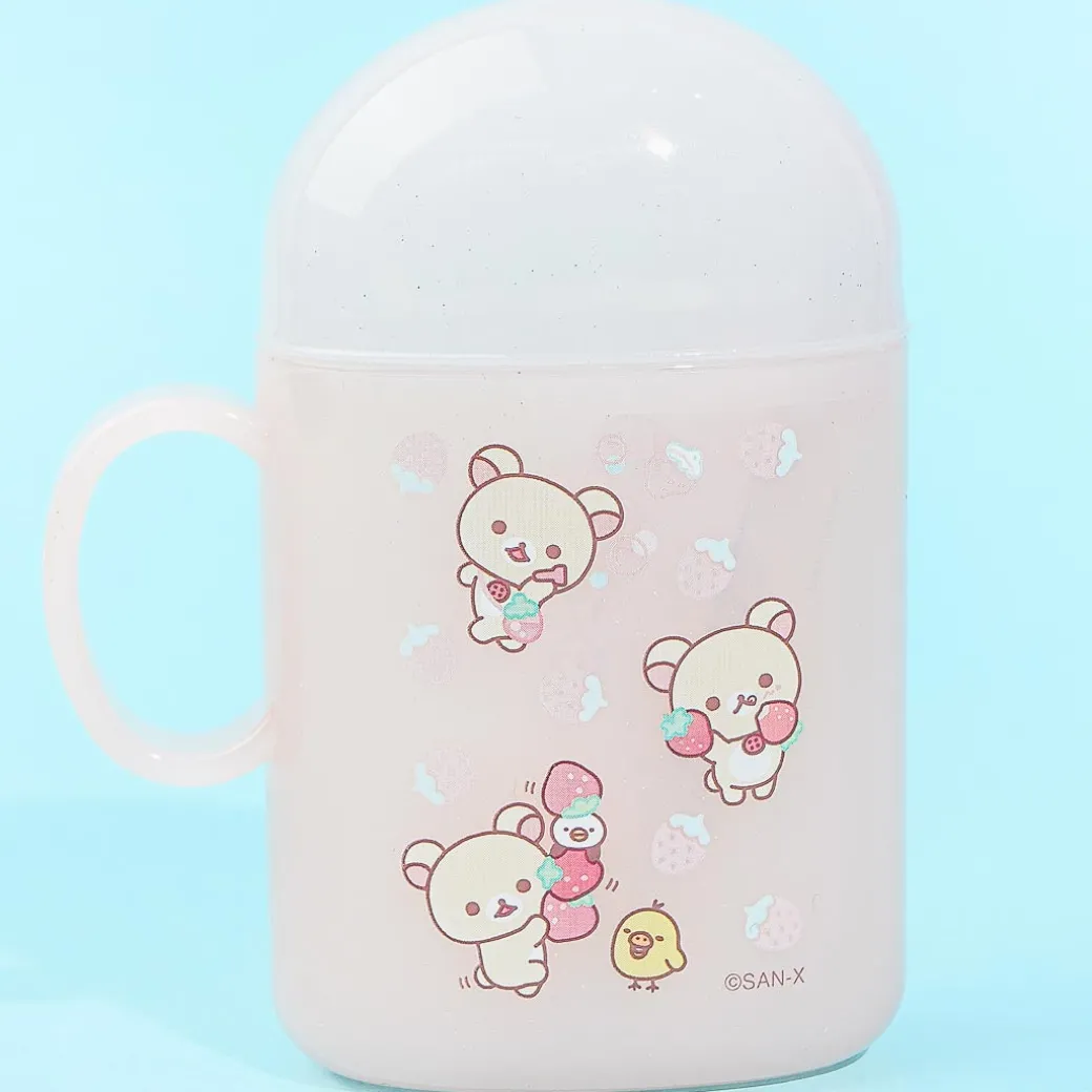 Use this kawaii toothbrush set to keep your teeth clean! It’s covered in prints of Rilakkuma and friends with strawberries. This set includes a travel toothbrush, a tube of toothpaste, and a cup with a lid.