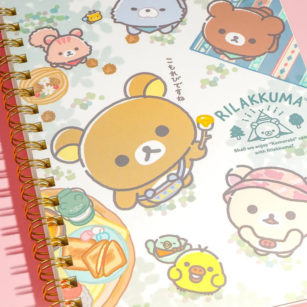 This super kawaii notebook comes from the Rilakkuma Komorebi Camp series. It showcases prints of Rilakkuma and his friends having fun at camp! Use this spring B6 notebook to write journal entries about your adventures and trips.