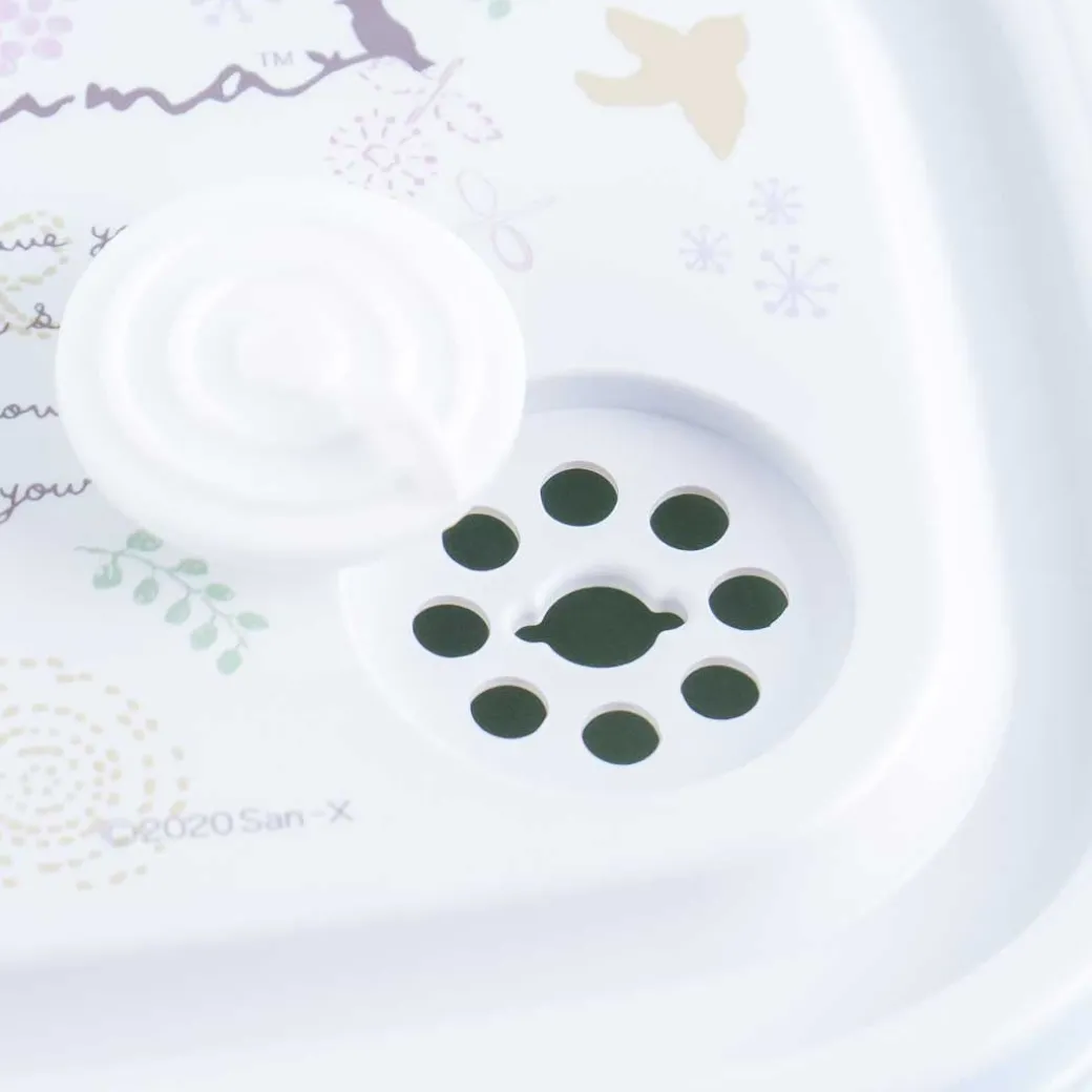 - A super cute bento box featuring prints of Rilakkuma enjoying the fresh air with leaves and birds