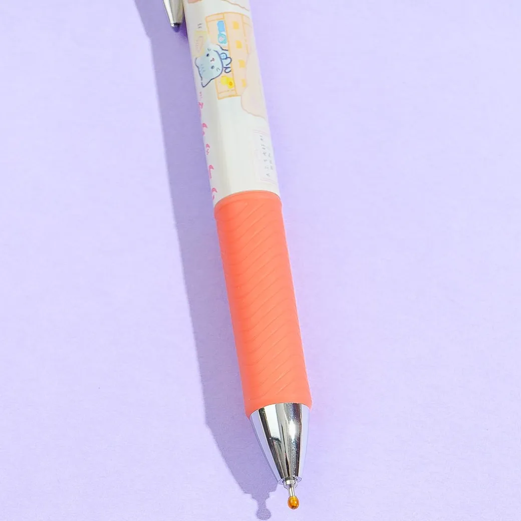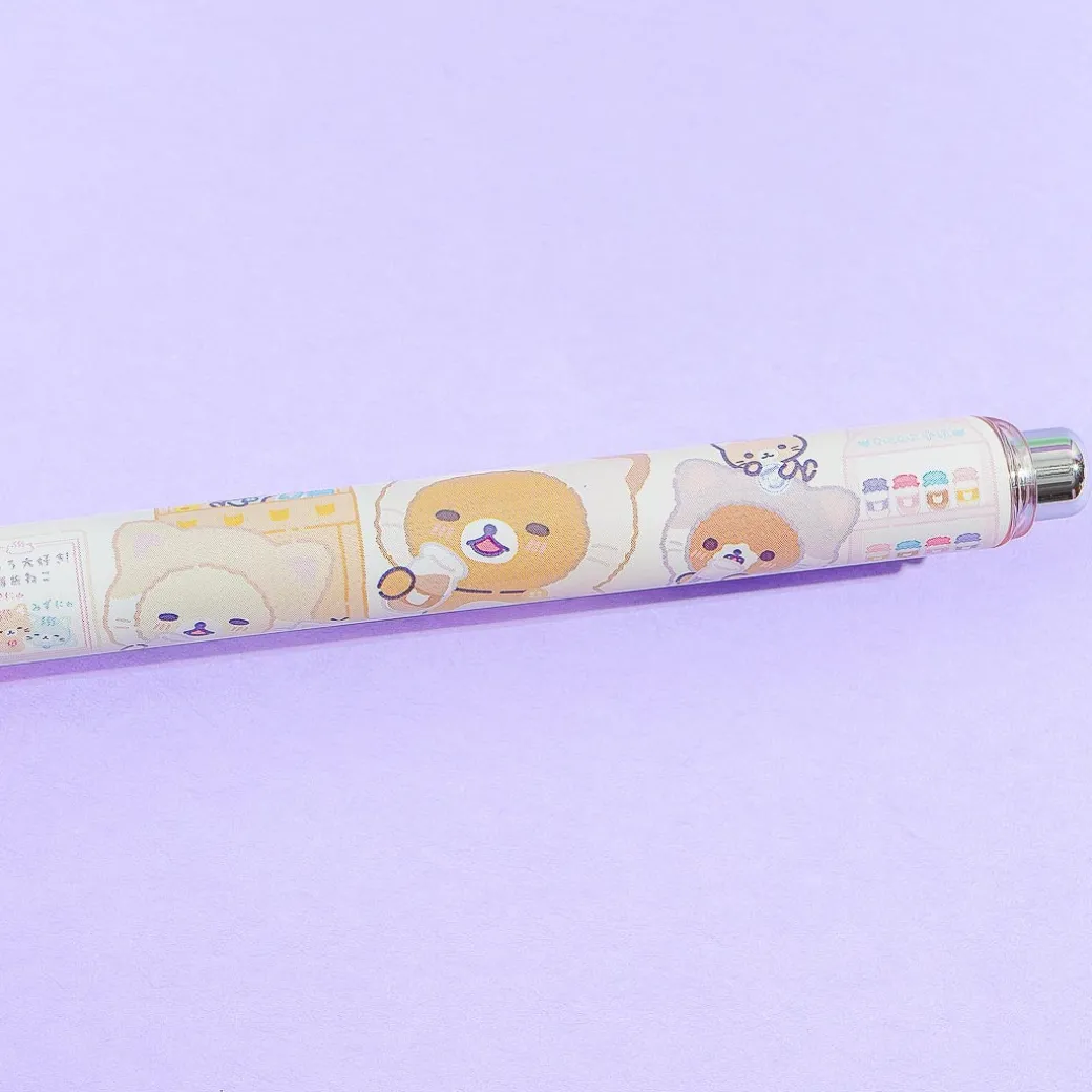 This cute pen comes from the Rilakkuma Neko Neko no Yu series. It has prints of Rilakkuma and his buddies coming out of the sento (Japanese public bath) wearing cat outfits! Use it to write down diary entries.