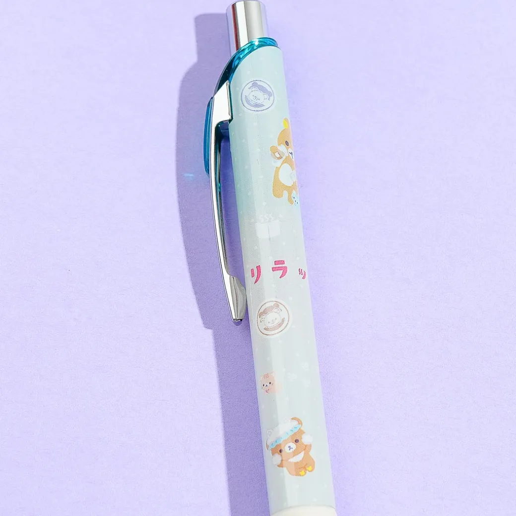 Use this mechanical pencil when drawing your favorite kawaii characters! It features cute illustrations of Rilakkuma drinking milk in a public bathhouse called “Nekoneko No Yu” or Cat’s Bath.