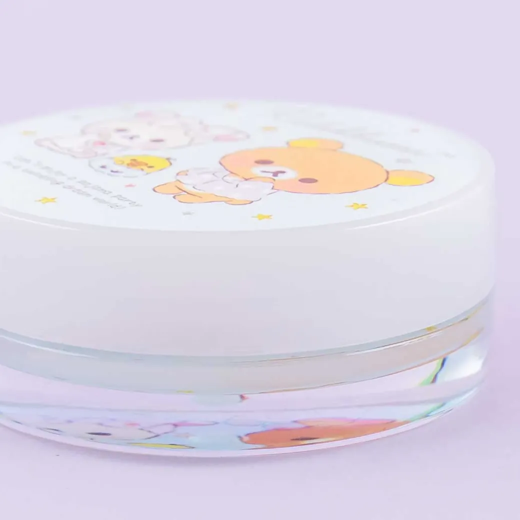 - A moisturizing all-over lotion in a round case featuring Rilakkuma and friends in sleepwear