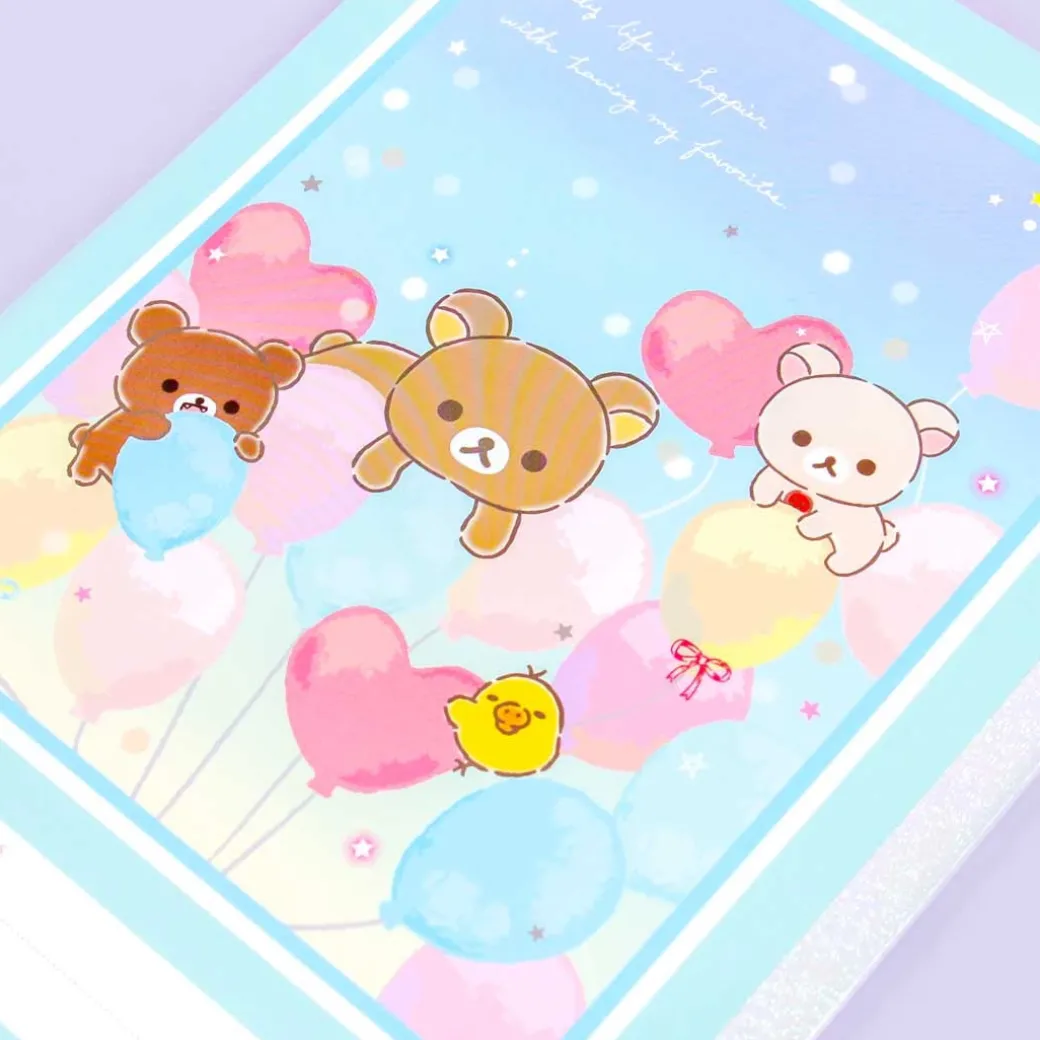 - A kawaii grid notebook illustrated with Rilakkuma characters playing with pastel balloons