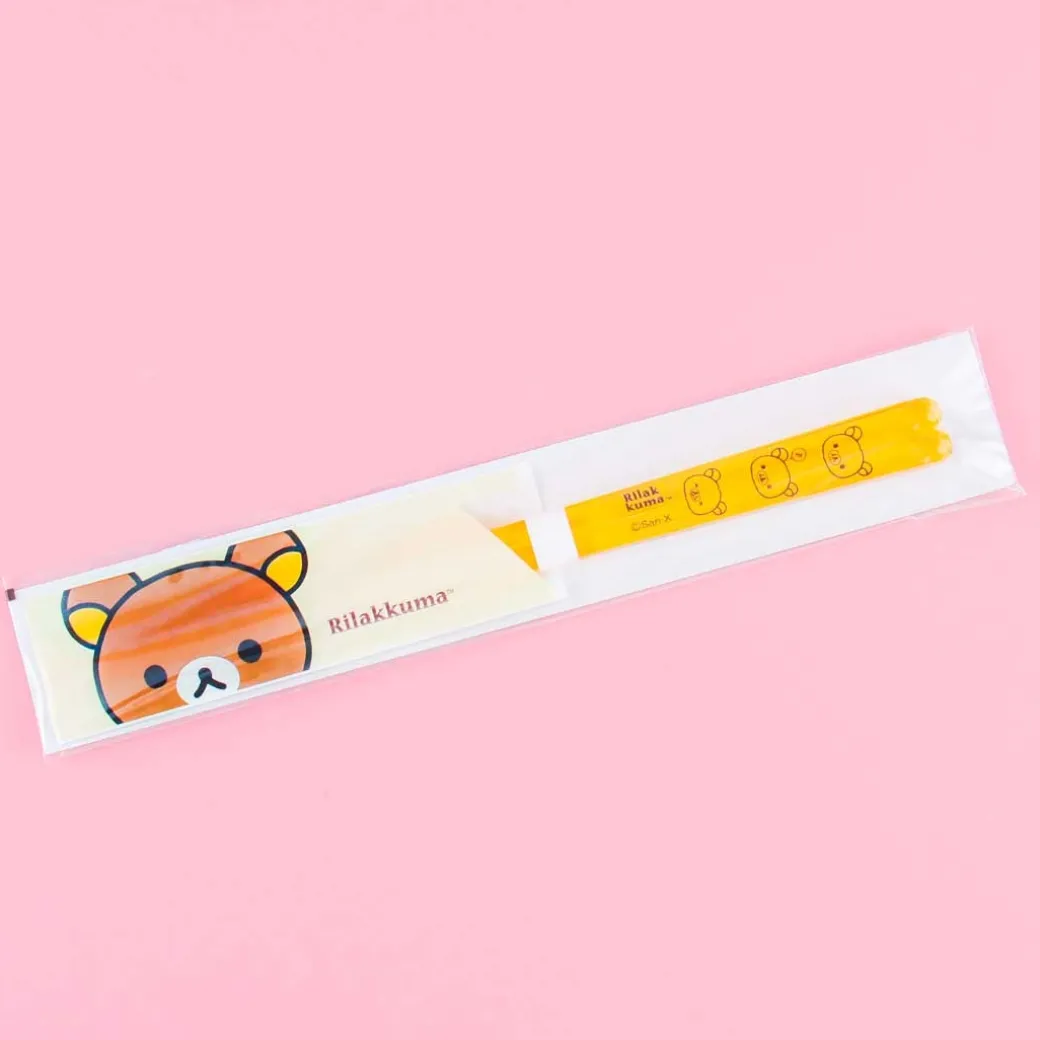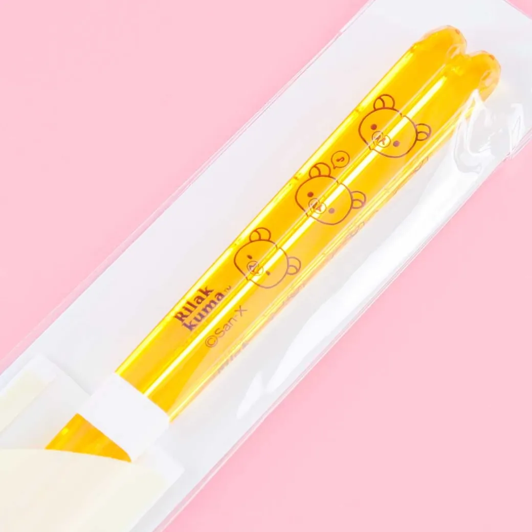 - A pair of reusable transparent chopsticks featuring Rilakkuma