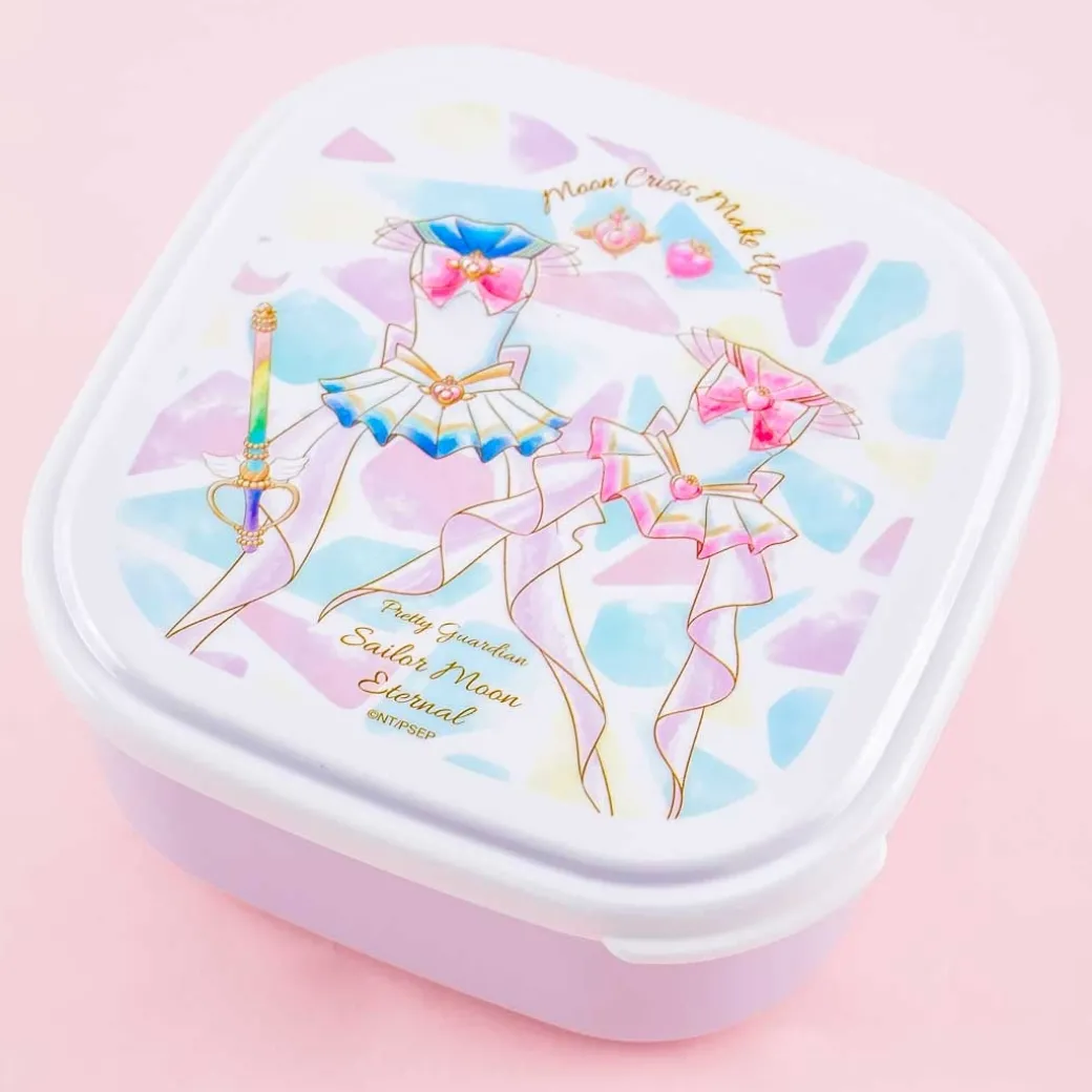 - A set of cute food containers with illustrations of Super Sailor Moon and Super Sailor Chibi Moon’s magical items