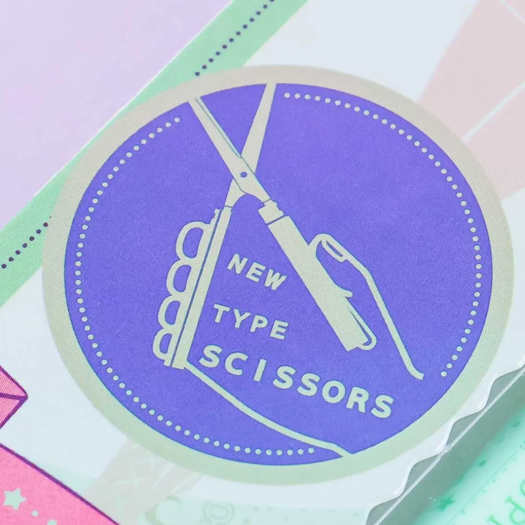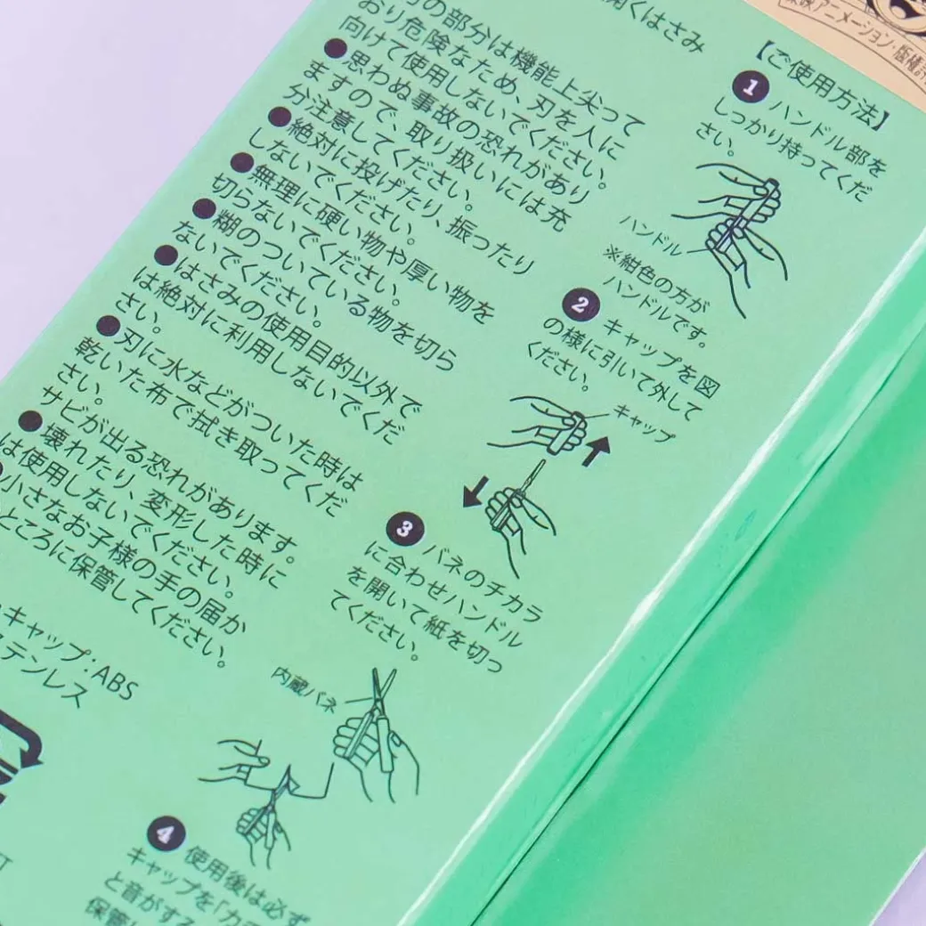 - A super cute pair of stick scissors with colors and a green jewel ribbon design representing Sailor Jupiter from Sailor Moon