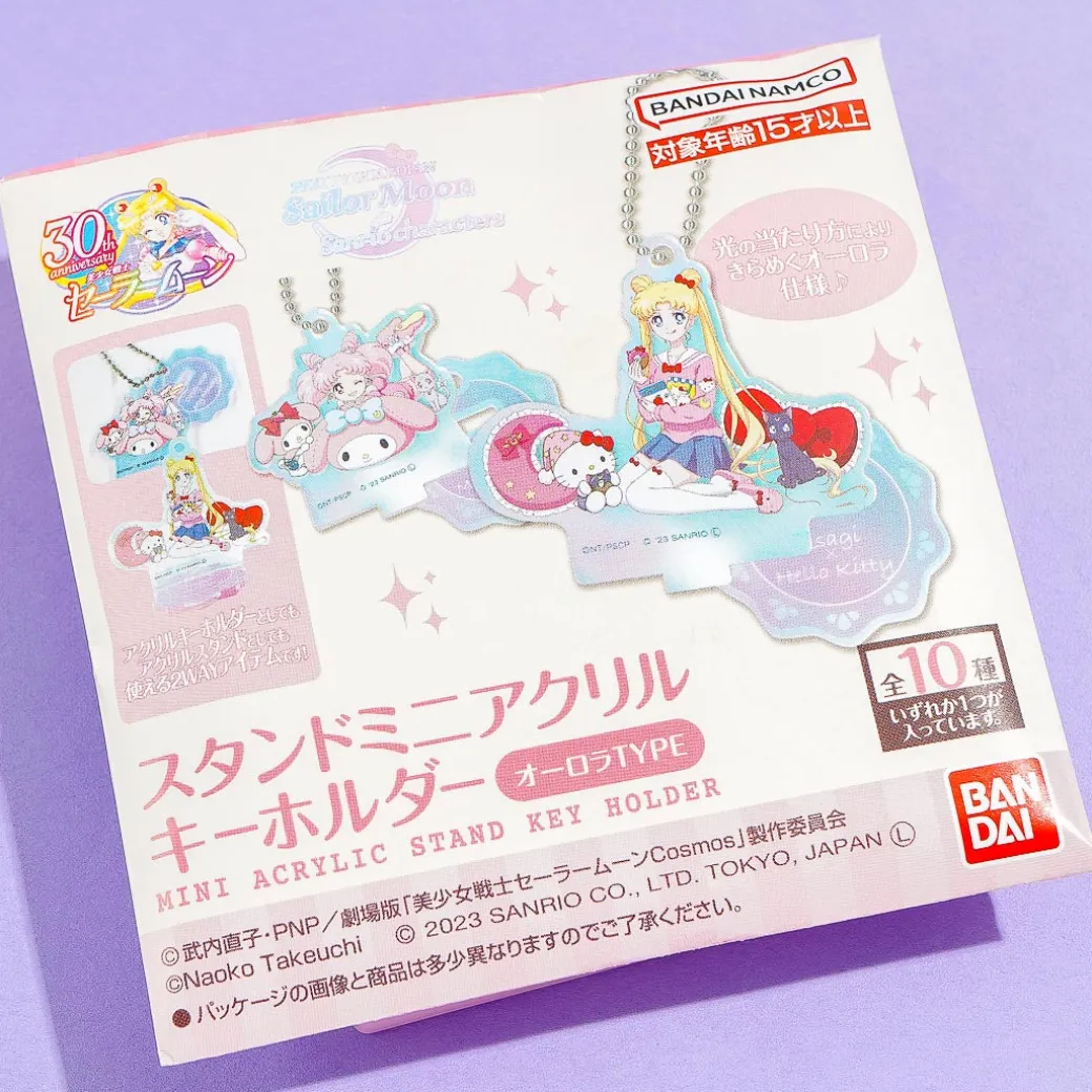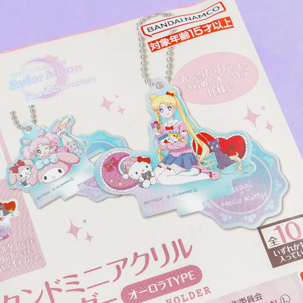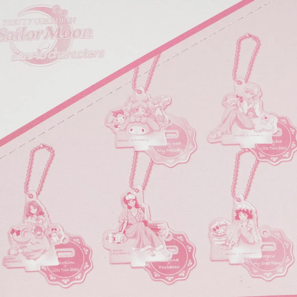 Decorate your favorite pouch with this kawaii die-cut acrylic charm showcasing a Sailor Moon character hanging out with a cutie from Sanrio. It comes from the Sanrio x Sailor Moon Guardian series. You can attach this collectible to your favorite bag with its removable ball chain.