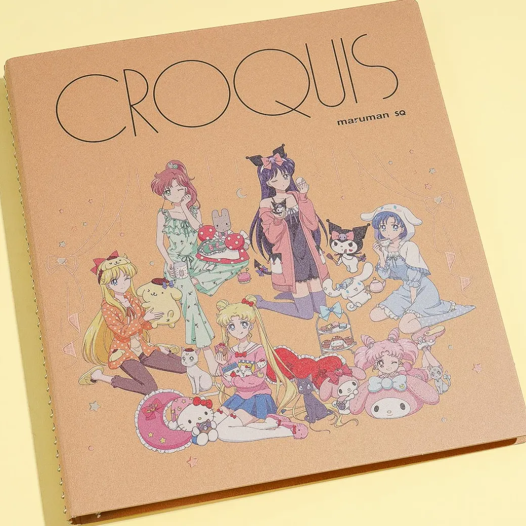 Use this square-shaped Croquis sketchbook to draw your favorite kawaii characters! The cover features a cute print of Sailor Moon and Sanrio Characters having a pajama party.