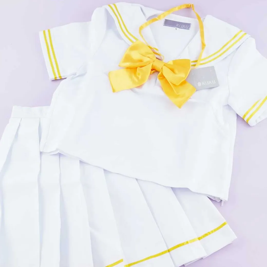 - A set of white-colored sailor coordinates with a yellow-colored bow tie