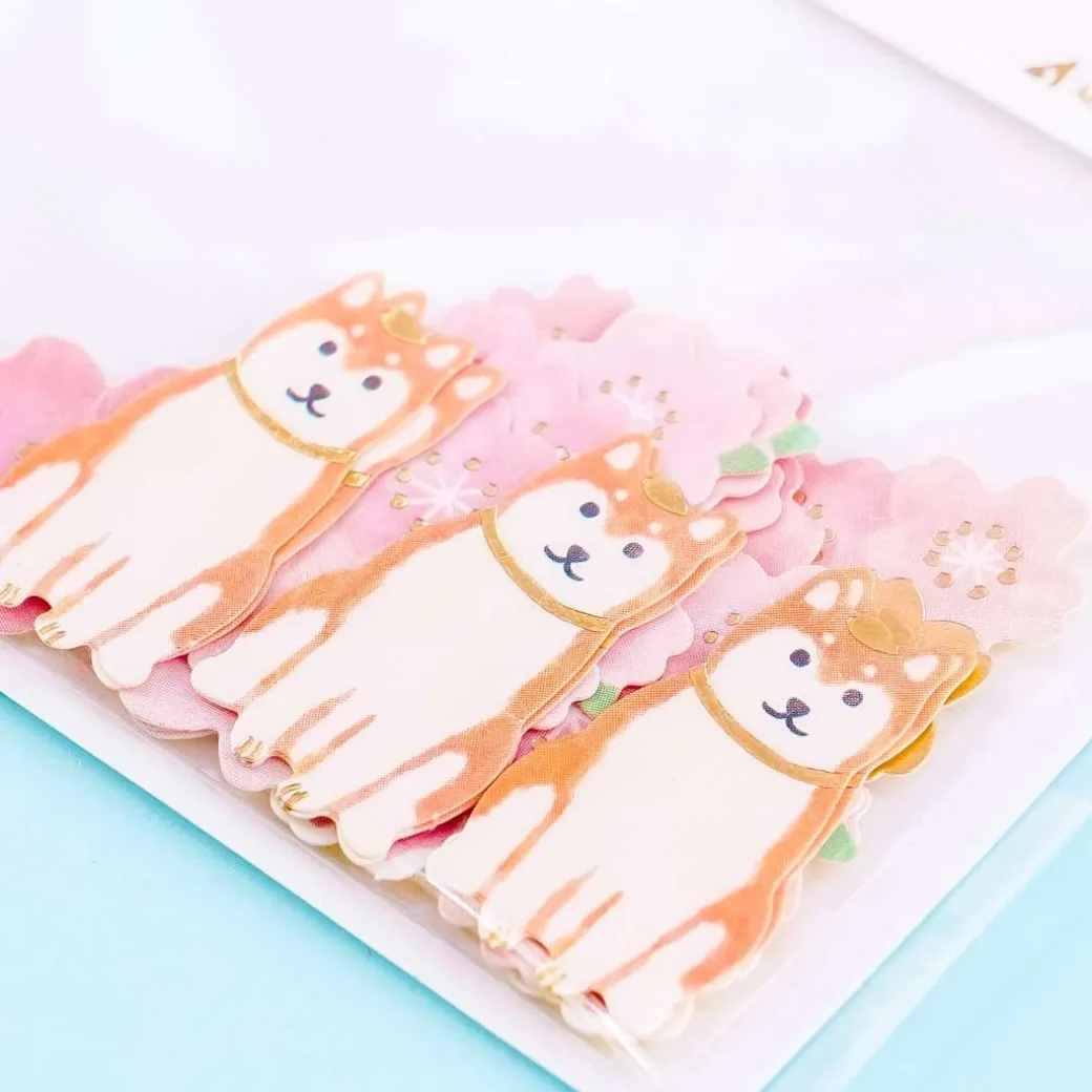 - A cute pack of sticker flakes featuring sakura flowers and Shiba Inu