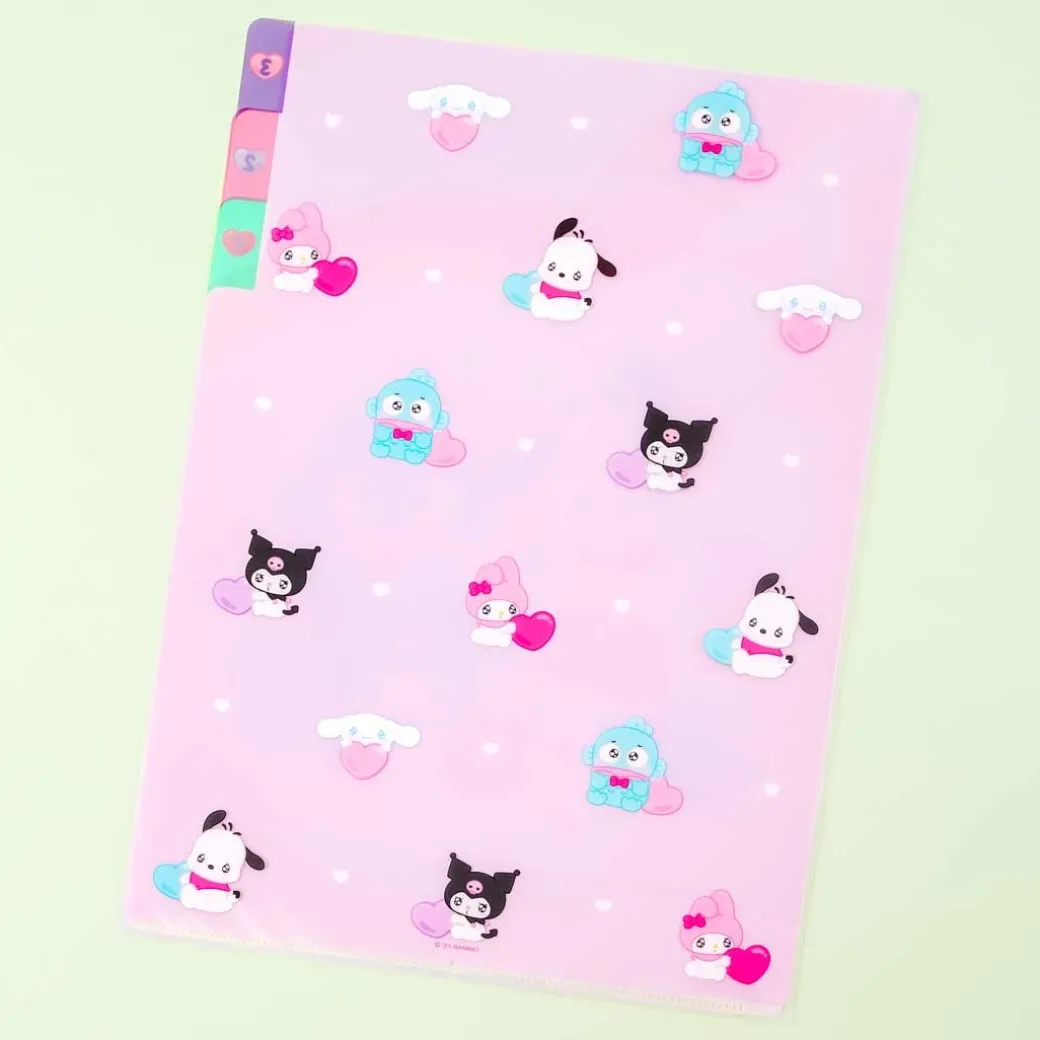- A kawaii A4 file folder featuring prints of Sanrio Characters with bright twinkling eyes
