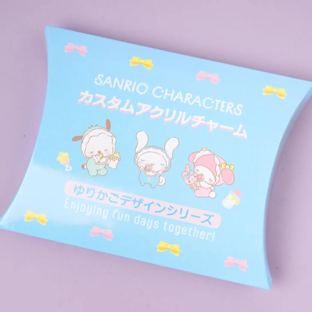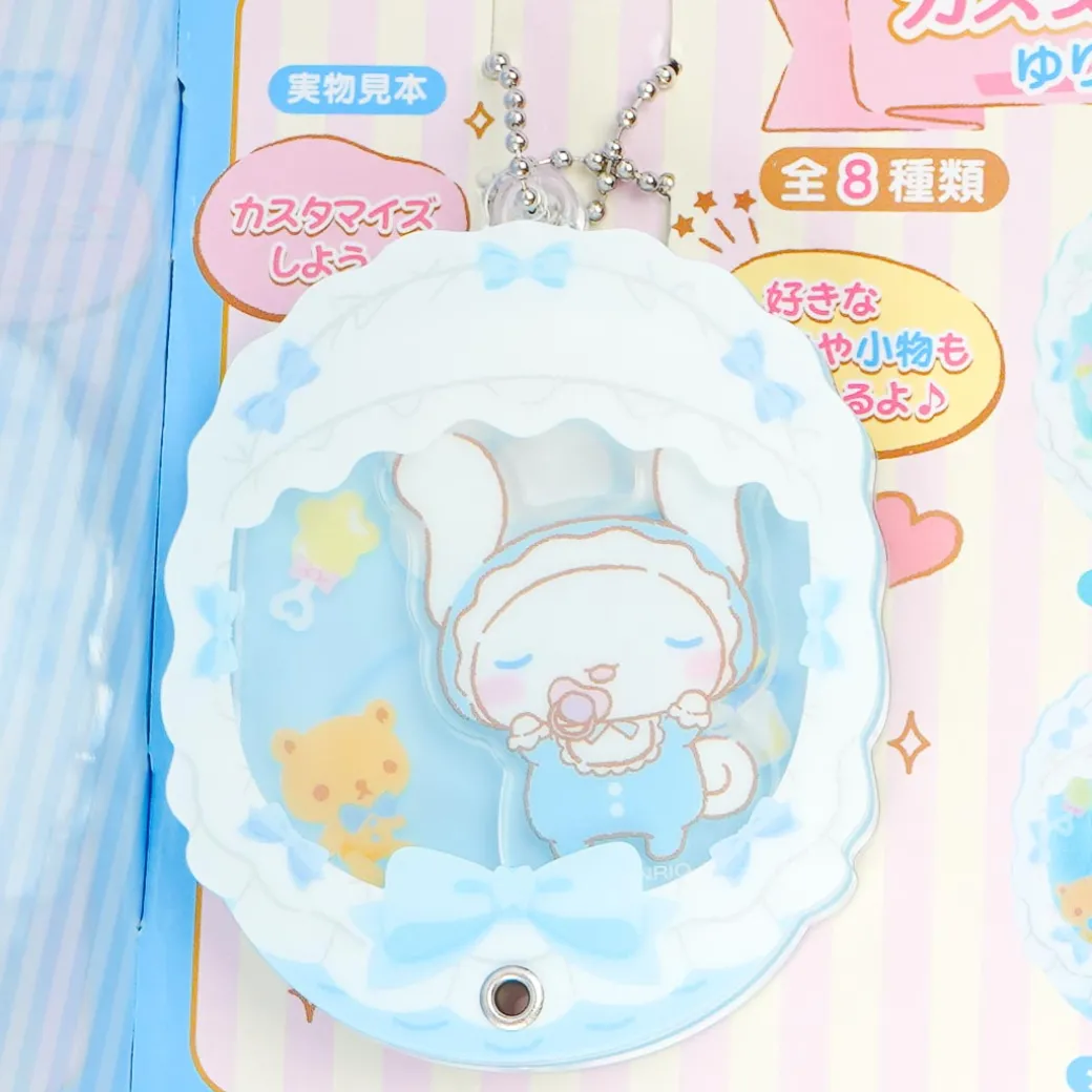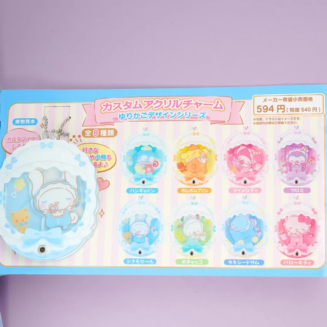 This super kawaii acrylic charm features a cute cradle design with a baby Sanrio character. It comes from the “Sanrio Characters Baby Custom Acrylic Charm” series. You can customize the charm by removing the baby and replacing it with your picture or with another character in the series. Surprise yourself with a random design – this charm comes blind-boxed so every order is always a fun mystery!