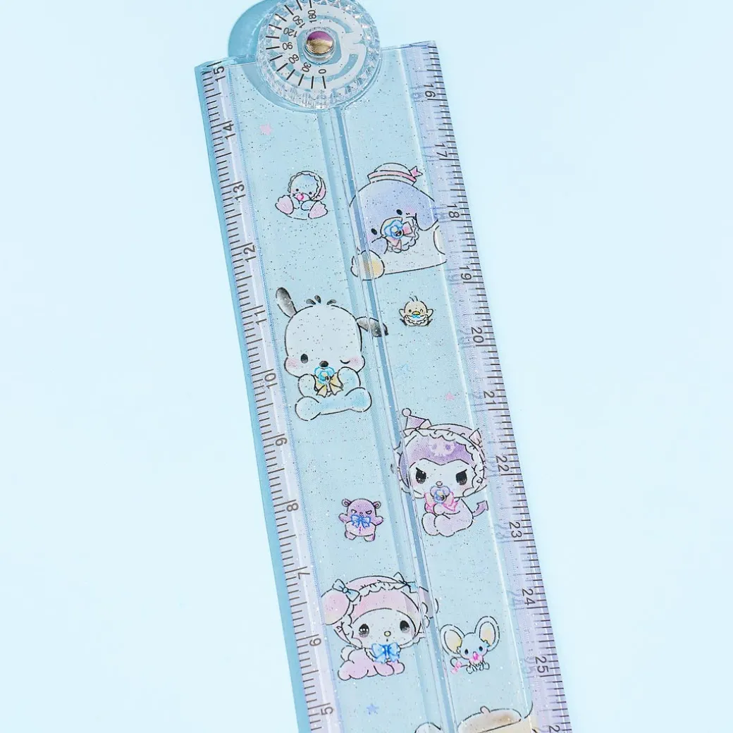 Use this cute folding ruler to draw lines and shapes. It features prints of the baby version of Sanrio cuties like Pochacco, My Melody, Pompompurin, and more! This ruler has a protractor and it can measure up to 30 cm when fully opened.