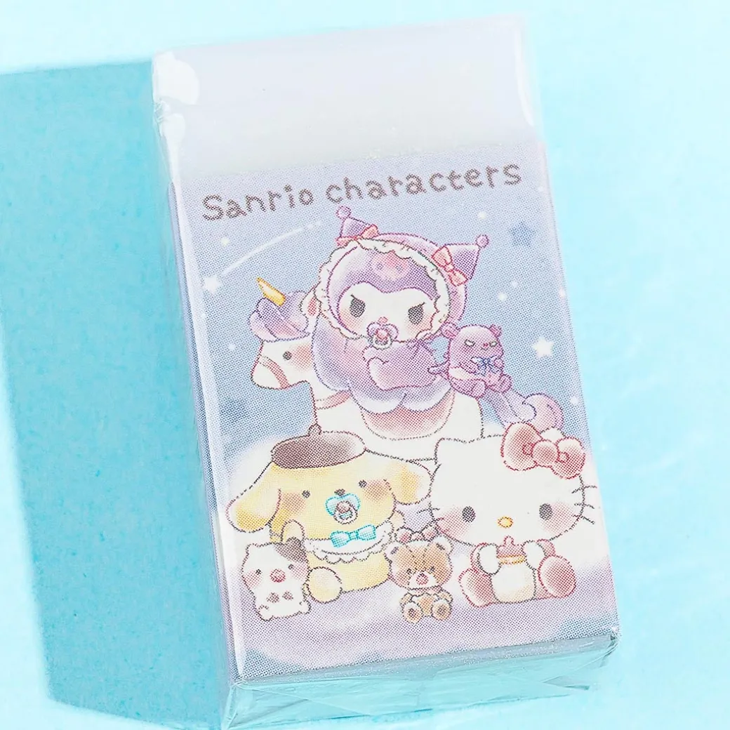 Keep your sketches and notes clean by using this cute eraser! Its cardboard sleeve is decorated with kawaii pastel illustrations of famous Sanrio Characters like Cinnamoroll, My Melody, Pochacco, and more — as their baby versions with pacifiers.