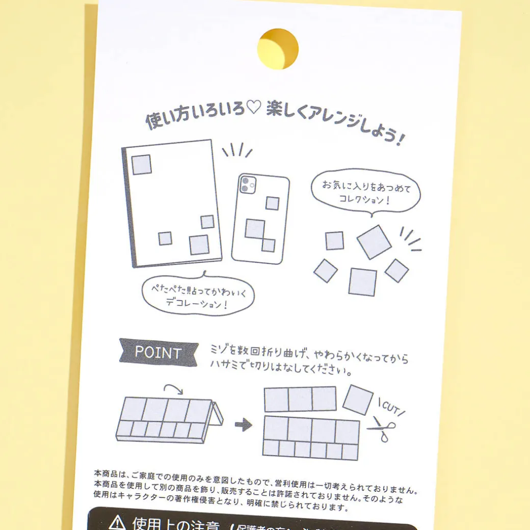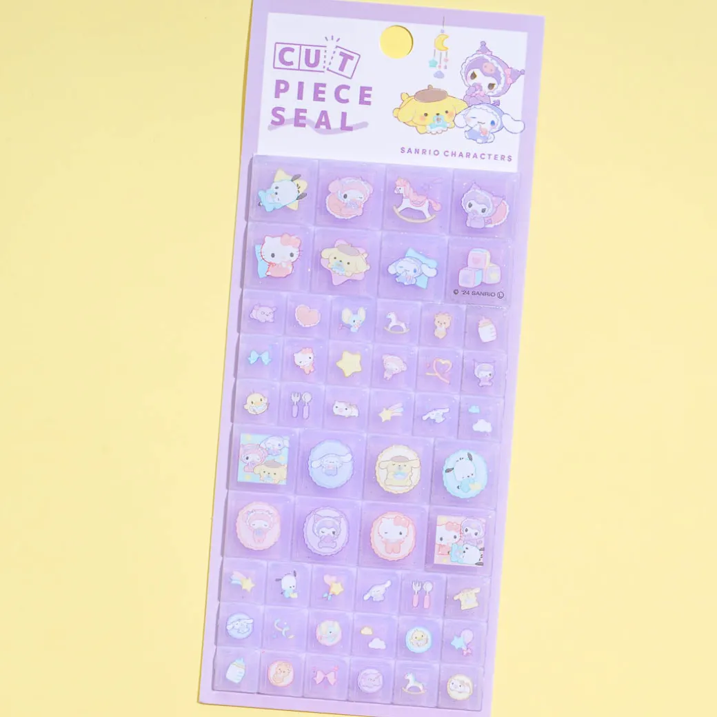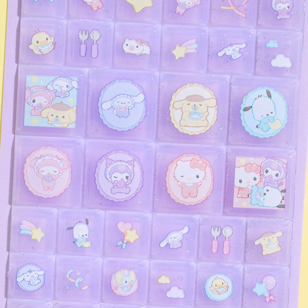 Decorate your notebooks and gadgets with these super cute tile stickers! Each piece features kawaii illustrations of Sanrio Characters dressed as babies and some baby accessories. Just cut along the groove to get a piece of sticker from the sheet!