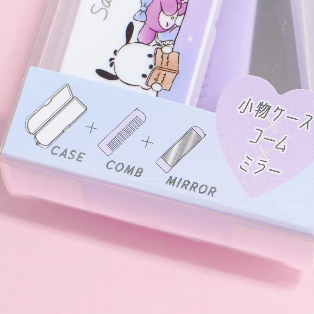 Do a quick hair touch-up even while on the go using this cute set! It comes with a small purple comb and a matching mirror. The included case has prints of popular Sanrio Characters getting ready for bed and this can also be used to keep extra hair pins and elastic ties.