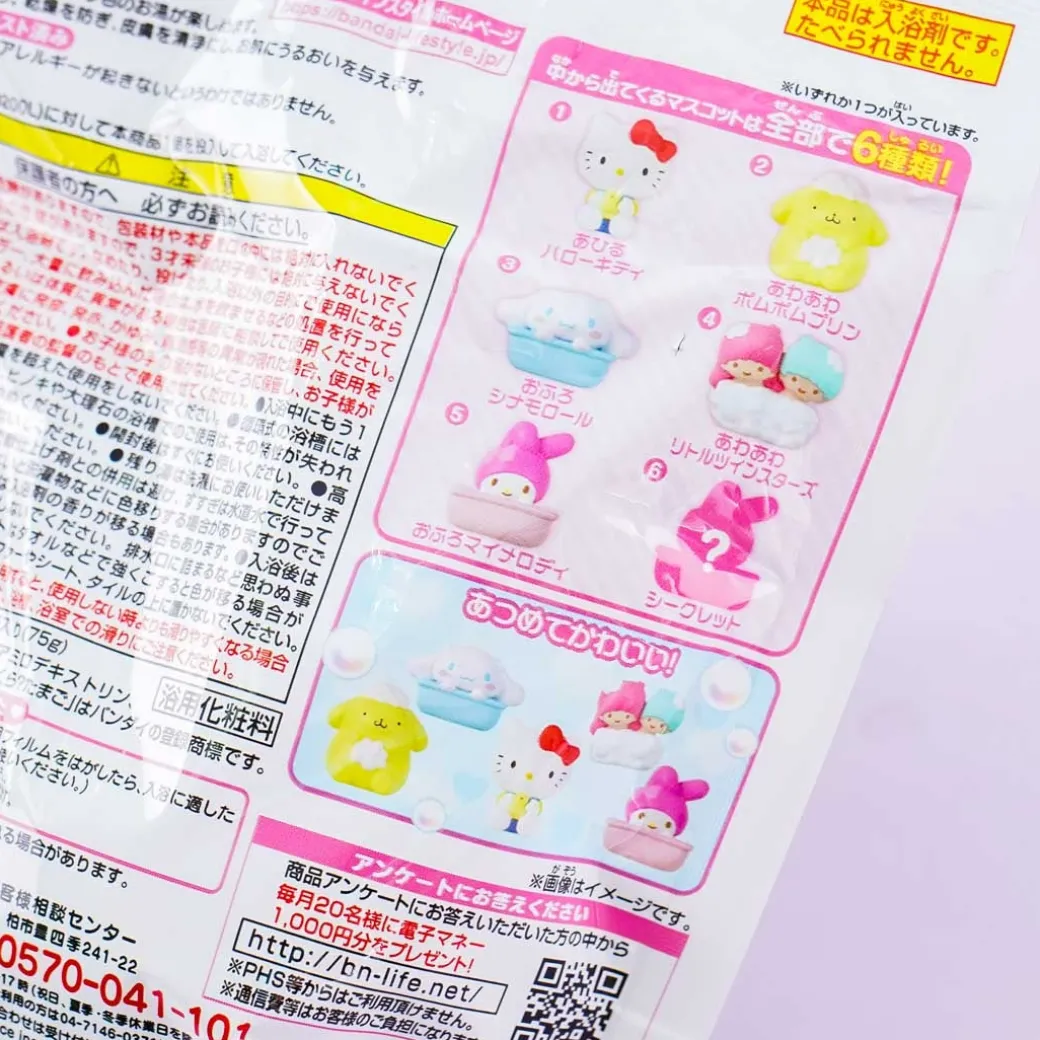 - A cute bath bomb with a mystery Sanrio character figure having a bubble bath